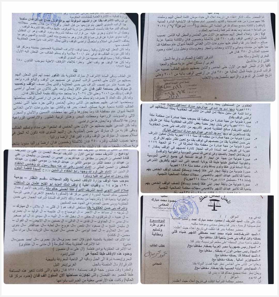 وقالت الدعوي، إن هذه الأراضي كانت معفأة من الضرائب بأنواعها بإعتبارها من الأوقاف، وضُمت تلك الأراضي منذ وصول محمد على باشا الكبير إلى حكم مصر، إلي الأوقاف العامة، وإنه يتم صرف مبلغ 88 جنيهًا و776 مليمًا، مناصفة بين المستحقين من نسل أصحاب الوقف الأصليين، وهما الأشراف العنقاوية الحسنيين والنصف الأخر للأشراف الجمامزة الحسينين بمحافظة قنا، بموجب سركي المرتبات رقم 1054 الصادر من الخزانة العامة لوزارة المالية ـــ الإدارة العامة للمعاشات الحكومية.