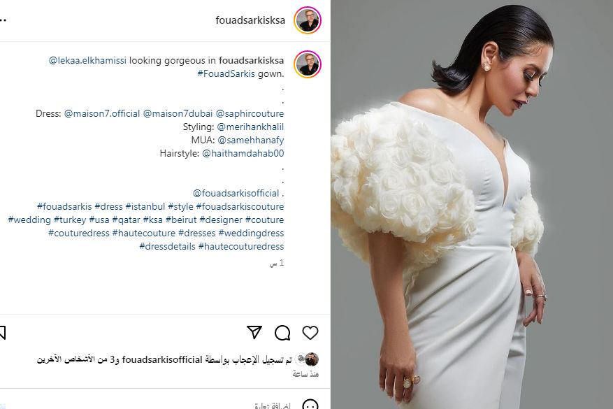 فؤاد سركيس: فستان لقاء الخميسي صمم من 50 سنة والورود أعادت أناقته