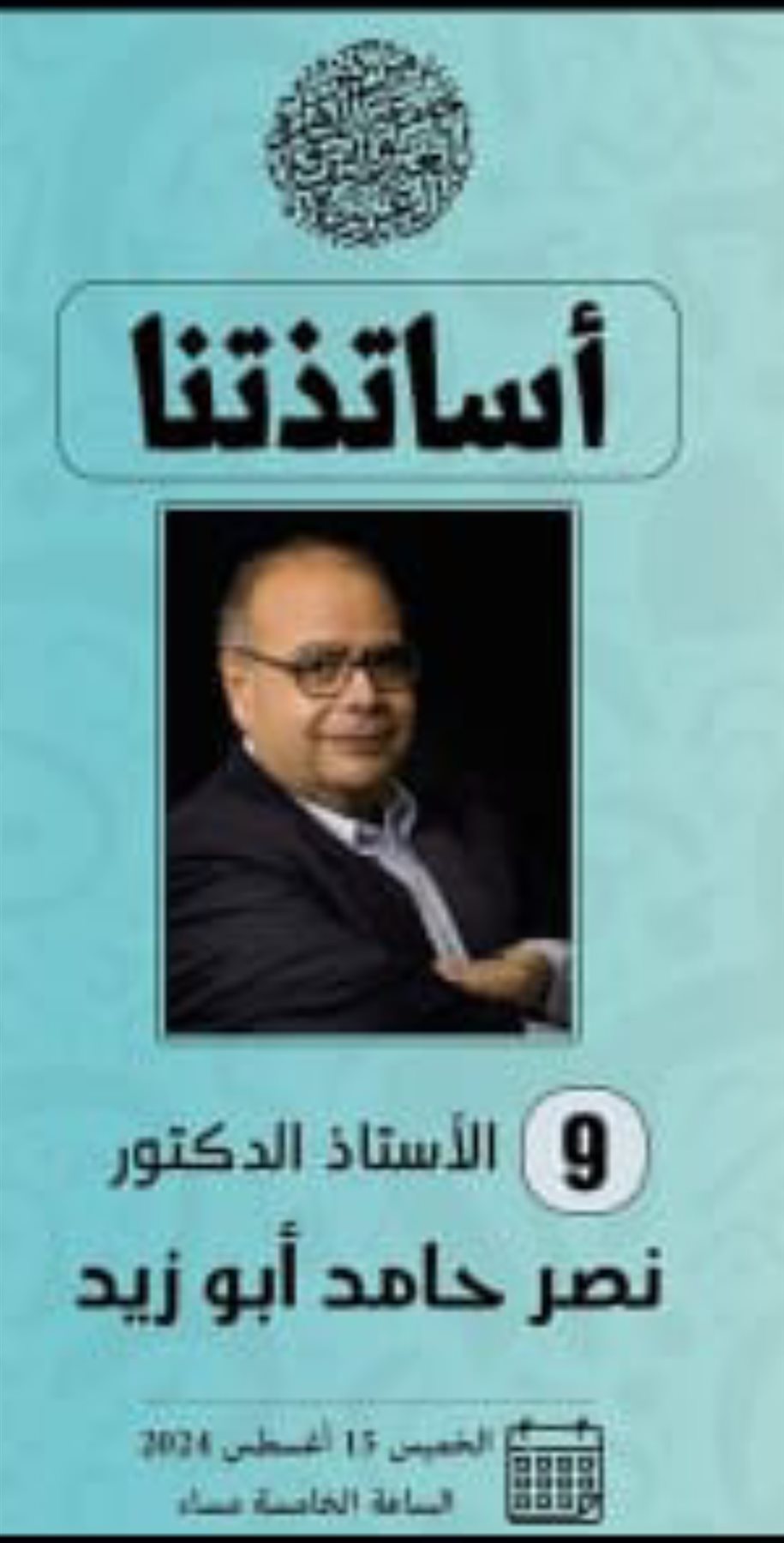 يأتي إحياء ذكرى الأستاذ الدكتور نصر حامد أبو زيد ضمن سلسلة اللقاءات الثقافية والفنية والأدبية والدينية التي ينظمها المركز الذي يديره  الدكتور أحمد عمار،  بشكلٍ دوري تحت عنوان "أساتذتنا" تقديراً لمشوارهم المثمر وإحياء لذكراهم العطرة، وانطلاقًا من الاستفادة بجهود السابقين وحرصًا على أن يؤدي المركز دورًا مهمًا في بناء جسور للتواصل بين الأجيال المختلفة ثقافيًا وأدبيًا.