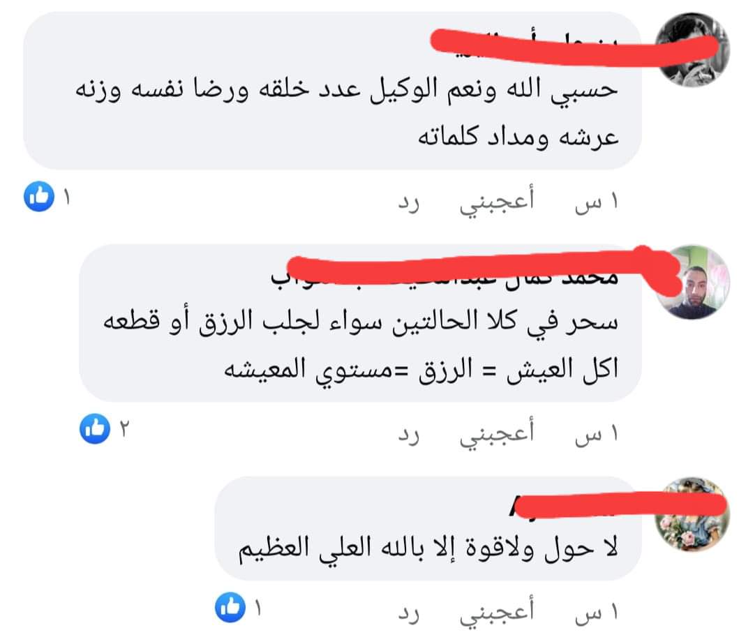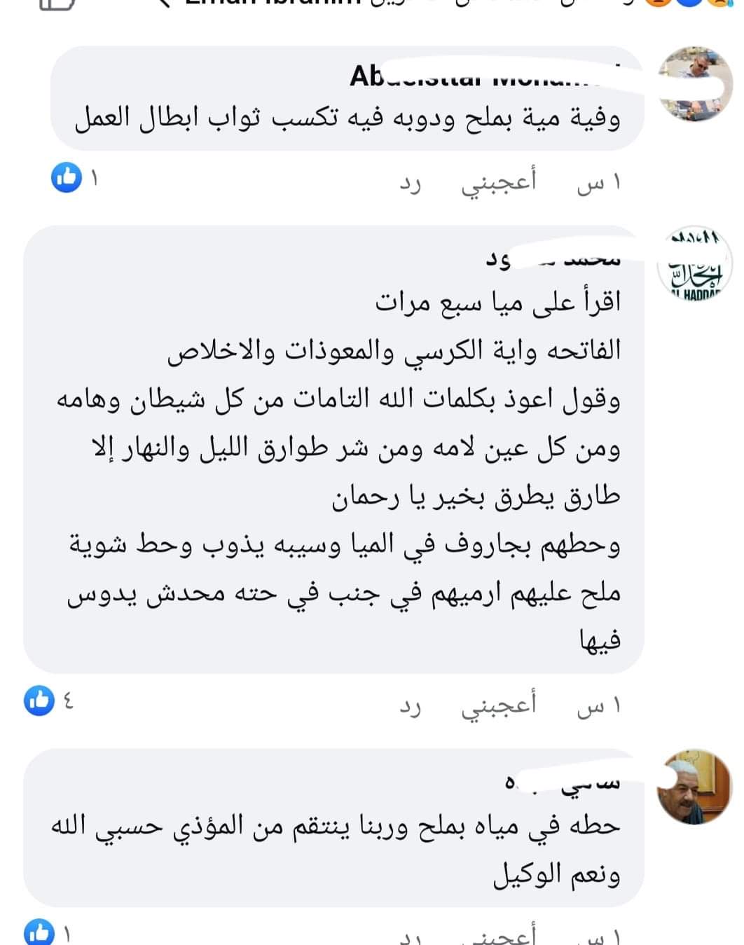 ناشدو رواد السوشيال ميديا، بضرورة التحصين بأذكار الصباح والمساء، وتلاوة القرآن الكريم بصورة دائمة لحماية أنفسهم من كيد السحرة والساحرين وأن القرءان هو طوق النجاة الوحيد من تلك الأفعال الشيطانية.