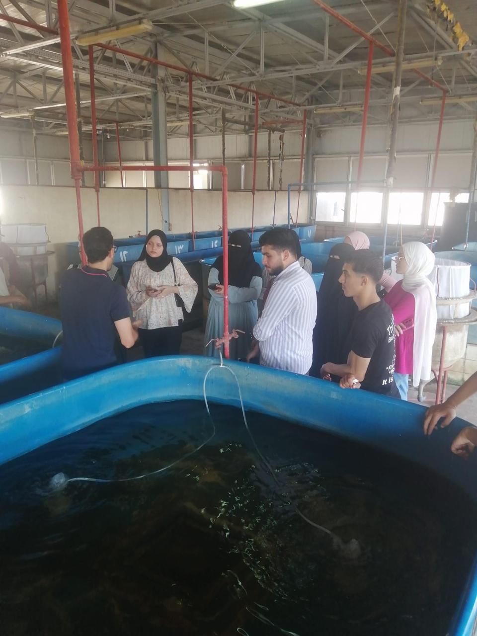 قام الطلاب بصحبة الدكتور نوفل مدير المفرخ السمكى والمهندس محمد عطية ، بجولة داخل المفرخ السمكي، للتعرف على كيفية انشاء المفرخات السمكية ، وكيف يتم اختيار الأمهات ذات الجودة العالية للبدء في عملية التفريخ وكيف يتم التعامل مع الزريعة واقلمتها وقام بتدريبهم عمليا على كيفية فحص وتشريح عينات اسماك البلطي وأسماك المبروك ، وتم شرح مكونات مفرخ الأسماك، الذى يحتوى على أحواض التفريخ، المخصصة لتفريخ الأسماك وتربية اليرقات في بيئة محكومة تضمن سلامتها ونموها السليم، وأحواض الحضانة، التى تُستخدم لحضانة الزريعة حتى تصل إلى الحجم الذي يمكن نقله إلى الأحواض الكبيرة، والمختبرات التى يتم فيها إجراء الفحوصات اللازمة لضمان جودة البيض واليرقات، وأنظمة الترشيح ، التى تعمل على تنقية المياه المستخدمة في التفريخ، وأنظمة التدفئة، التى تستخدم لرفع درجة حرارة المياه في فصل الشتاء لتحفيز عملية التفريخ، وأجهزة التحكم في درجة الحرارة والإضاءة، التى تساعد في محاكاة الظروف الطبيعية المثالية لنمو الأسماك، ومختبرات مراقبة الجودة، التى تُستخدم لفحص صحة الأسماك ورصد أي أمراض قد تصيبها في المراحل المبكرة من التفريخ.