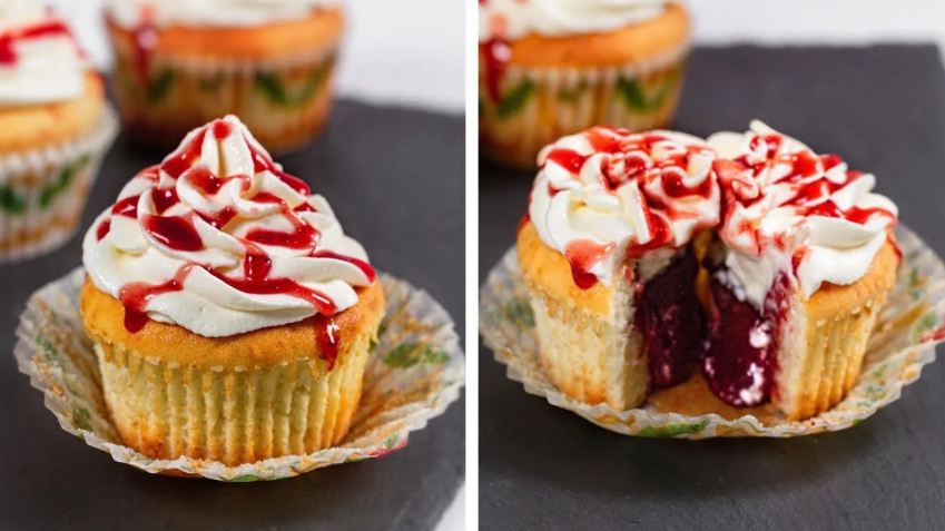 حلوى الأعياد| طريقة عمل كب كيك بالفراولة والكريمة لطعم رائع