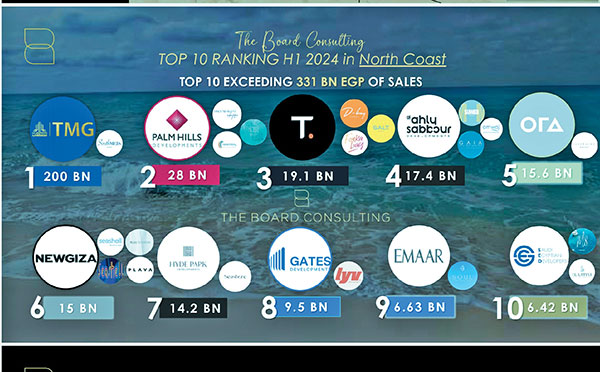 وكشف تقرير حديث لشركة «ذا بورد كونستلنج» المتخصصة فى الدراسات العقارية، عن أن أكبر 10 شركات تطوير عقاري، تجاوزت مبيعاتها  فى منطقة الساحل  331 مليار جنيه مصرى خلال النصف الأول من عام 2024.