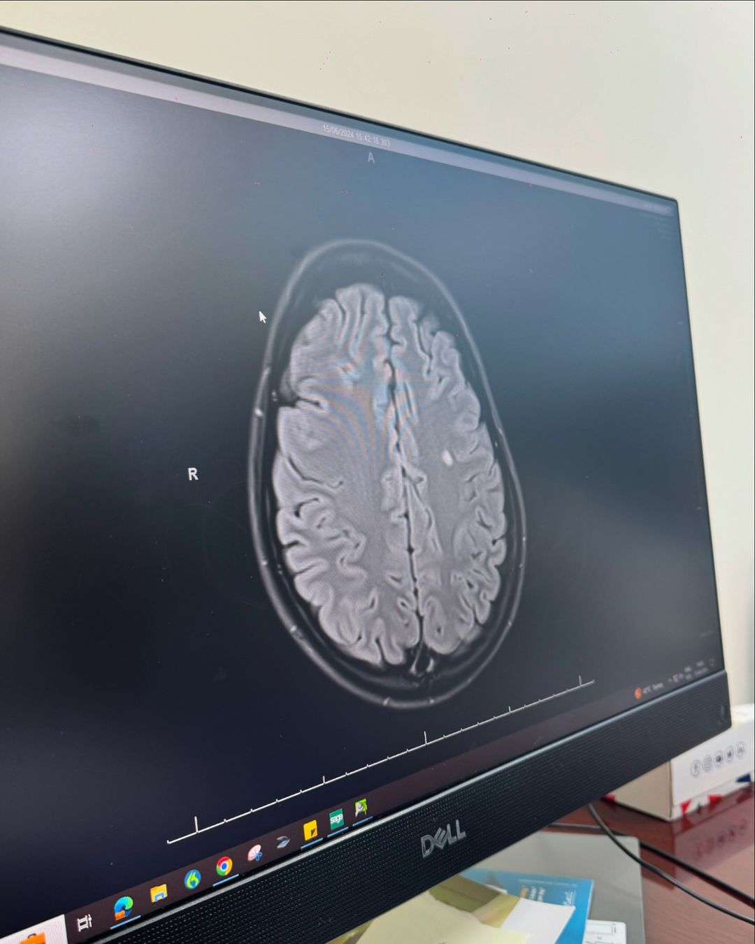وتابعت:"من فترة تعبت صحتي و حسيت انه في شي غلط بجسمي ف رحت اعمل فحوصات عامة و ما كنا نعرف السبب للتعب الجسدي لبين ما قررنا نعمل رنين مغناطيسي للدماغ، و اكتشفنا انه كان في عندي ٣ نقط بيض على الدماغ بأحجام مختلفة و حاليا رح أخوض رحلة لمدة سنتين لحتا أتابع مع الدكتور لنتأكد انه ماله مرض مناعي و انشالله خير".