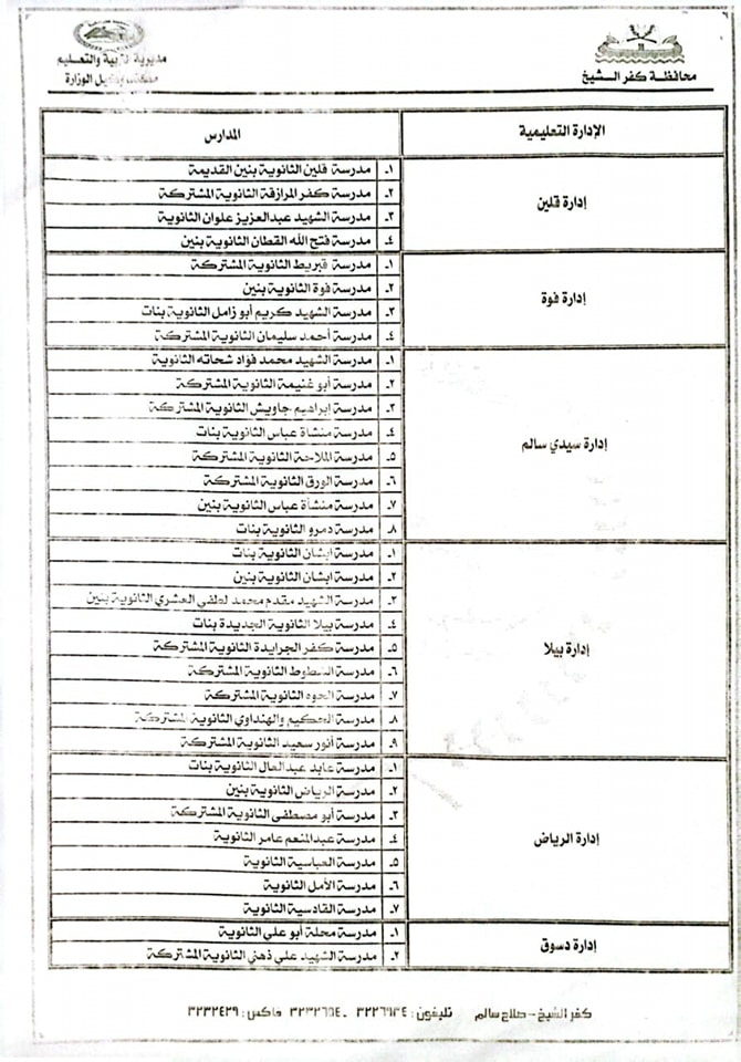 والمدارس التابعة لبعض الإدارات التي تم بها التخفيض هي أولًا إدارة شرق كفرالشيخ: