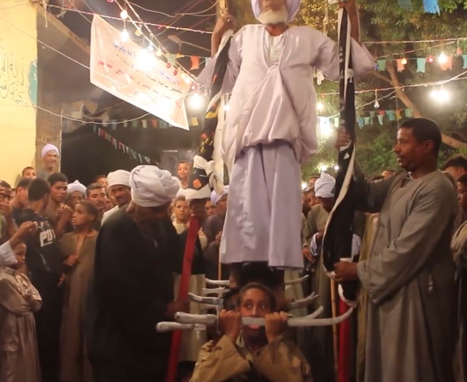 تداول رواد مواقع التواصل الاجتماعي مقطع فيديو لطقوس غريبة بأحد الموالد الشعبية في مصر، ويظهر خلال مقطع الفيديو المتداول، مجموعة من الأشخاص يرتدون الجلباب المصري، يفترشون الأرض بالتدرج على بعضهما البعض، وكل منهما يضع على رقبته سيفًا، ثم يقوم أحد الأشخاص الآخرين بالوقوف بقدميه على كل سيف من هذه السيوف، وبعدها يتبين أنه لم يحدث شيء لهؤلاء الأشخاص.