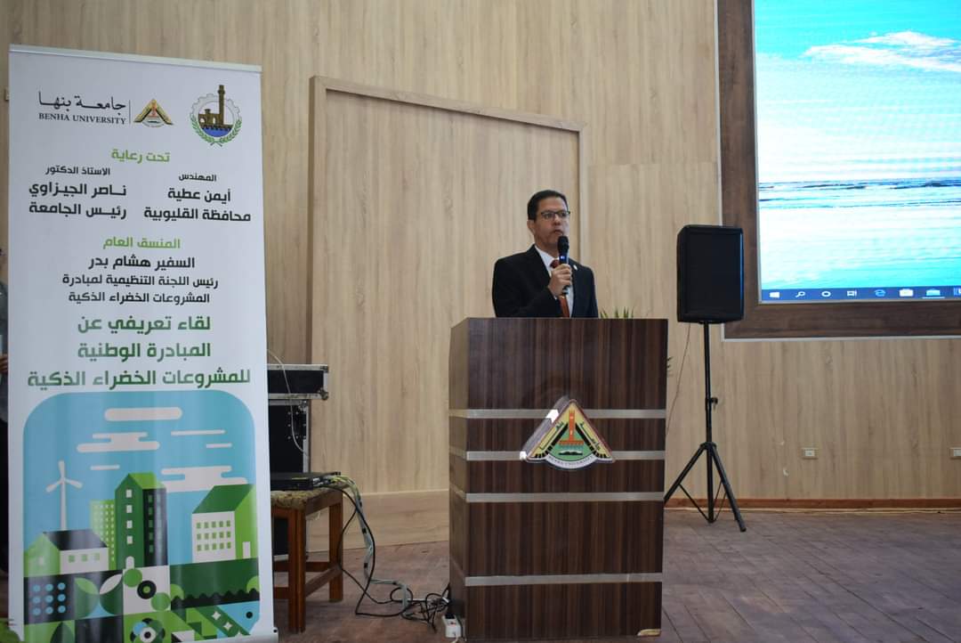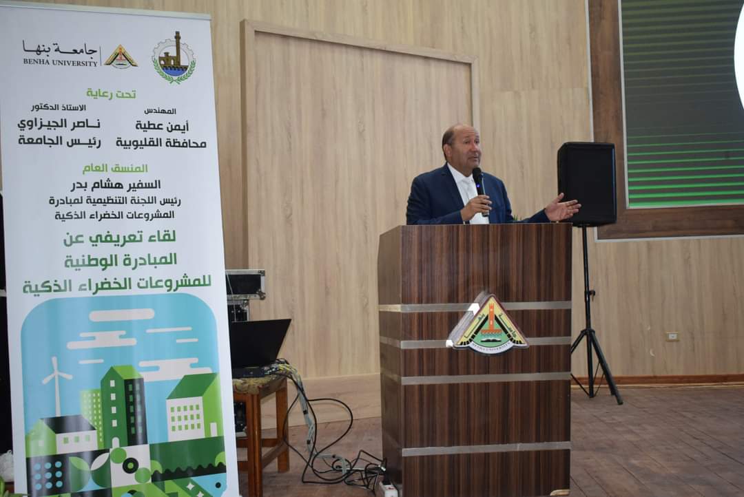 افتتح المهندس أيمن عطيه محافظ القليوبية، والدكتور ناصر الجيزاوي رئيس جامعة بنها، بحضور السفير هشام بدر رئيس اللجنة التنظيمية لمبادرة المشروعات الخضراء الذكية، اللقاء التعريفي، عن المرحلة الثالثة للمبادرة وذلك بقاعة الاحتفالات الكبرى بمجمع الكليات.