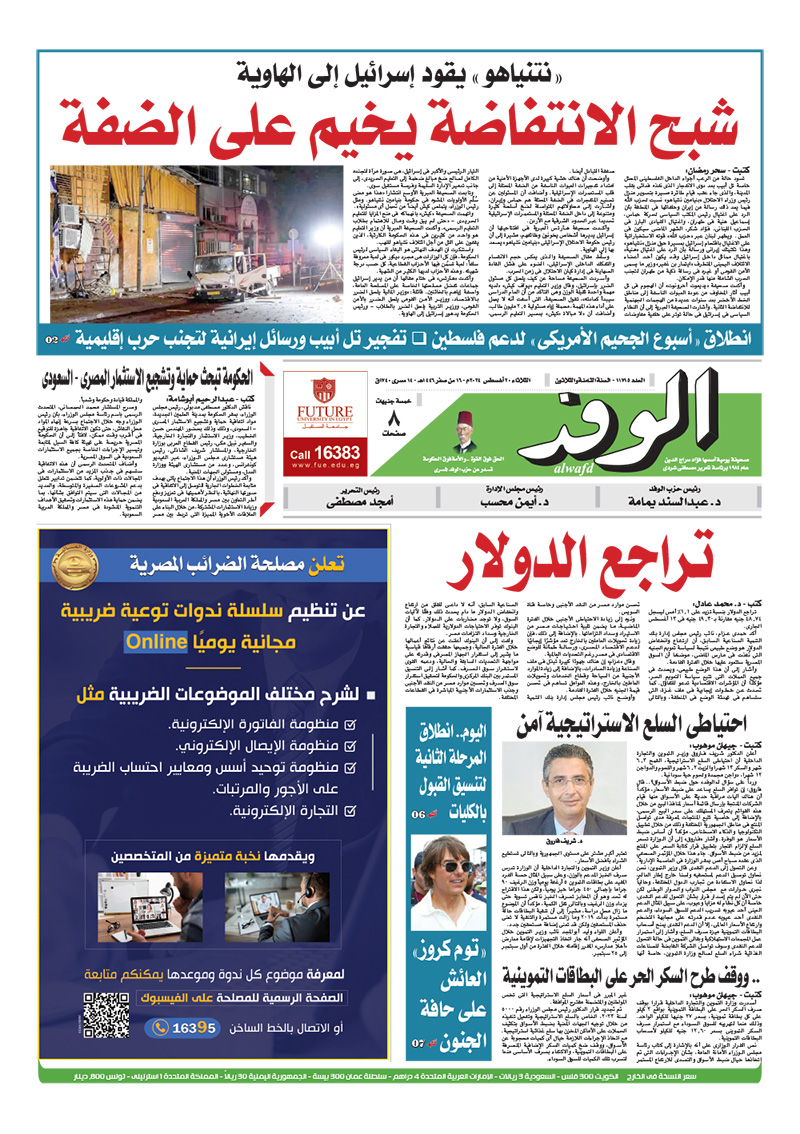 تنشر جريدة الوفد في عددها الصادر، غدًا الثلاثاء، الكثير من الموضوعات والتقارير الإخبارية المهمة، أبرزها: "شبح الانتفاضة يخيم على الضفة".