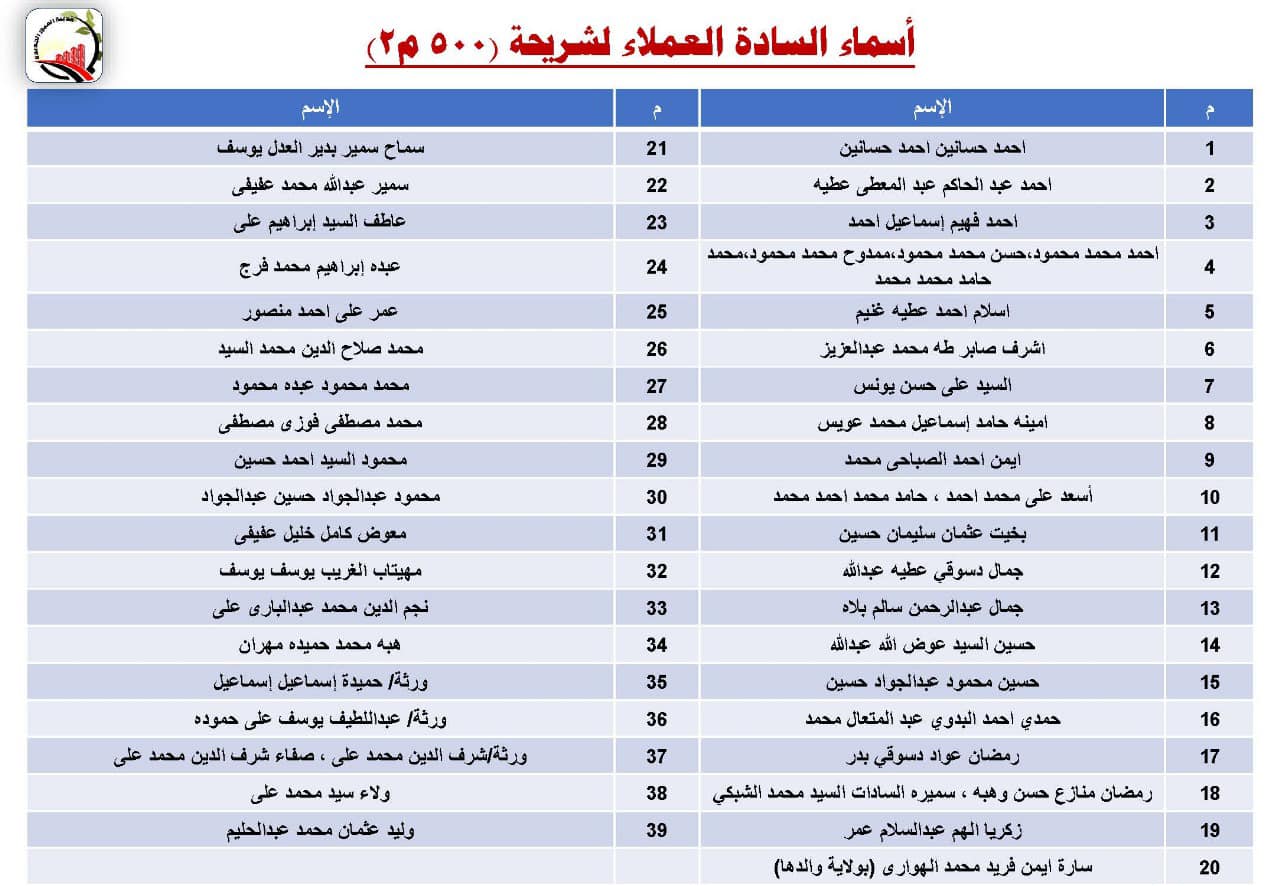 وأوضح الجهاز، في بيان له، أنه سيتم التسكين وفقا لأقرب شريحة مساحة معتمدة تتناسب مع المساحة التي تم توفيق أوضاعها.