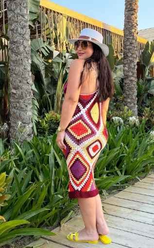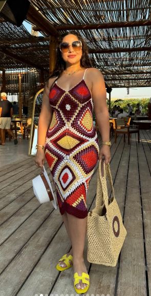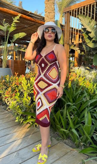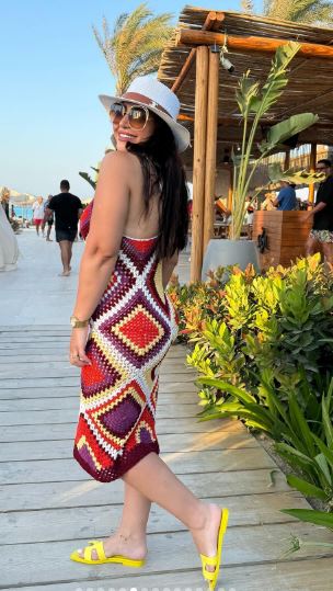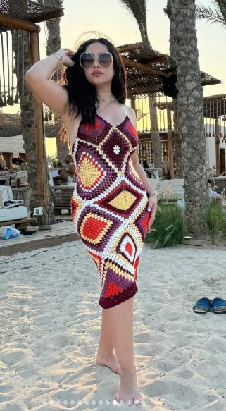 بوسي تواكب موضة فساتين التريكو في الساحل الشمالي (صور)