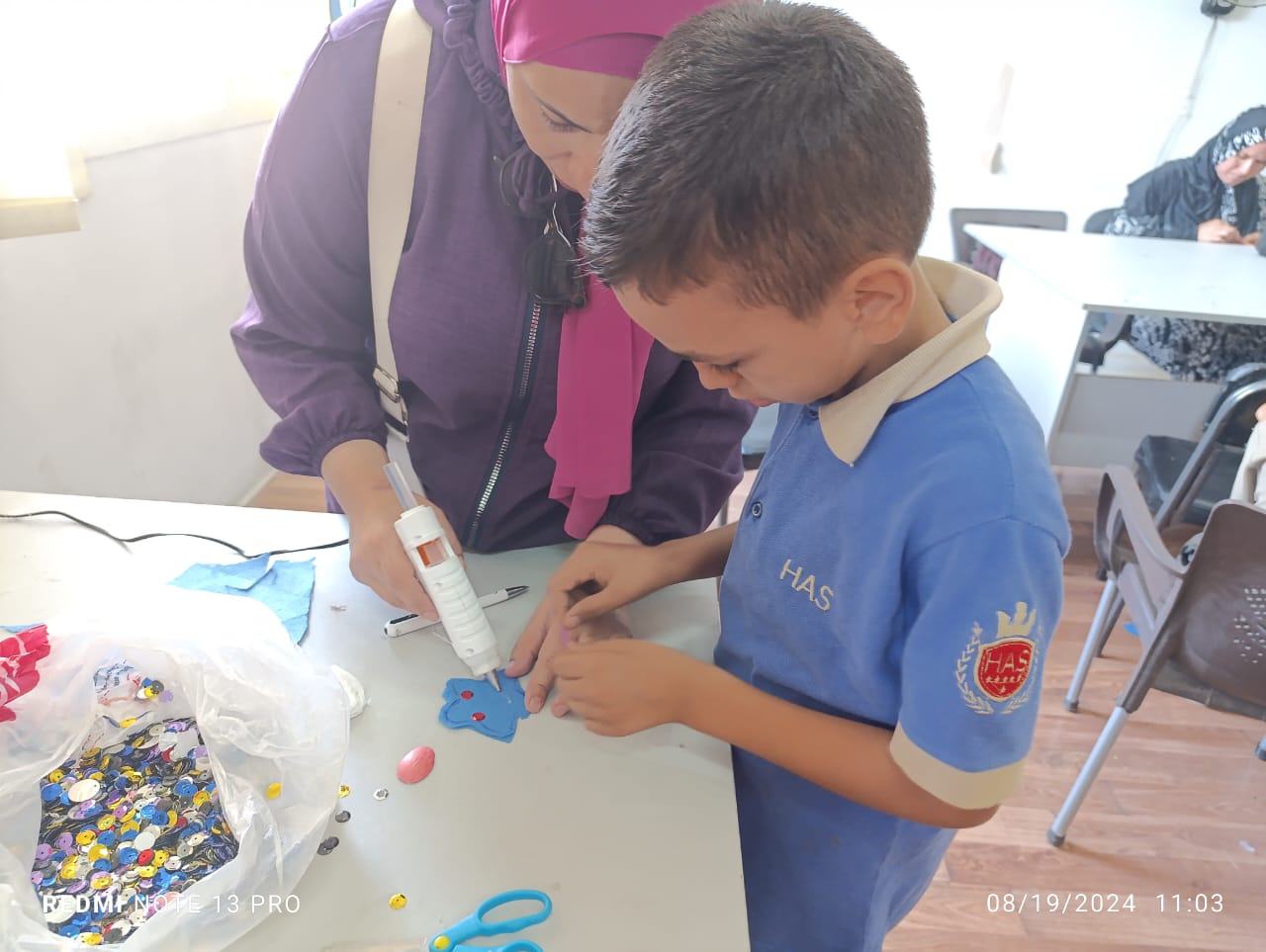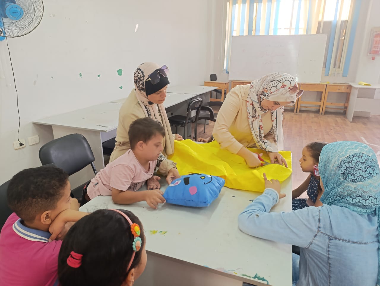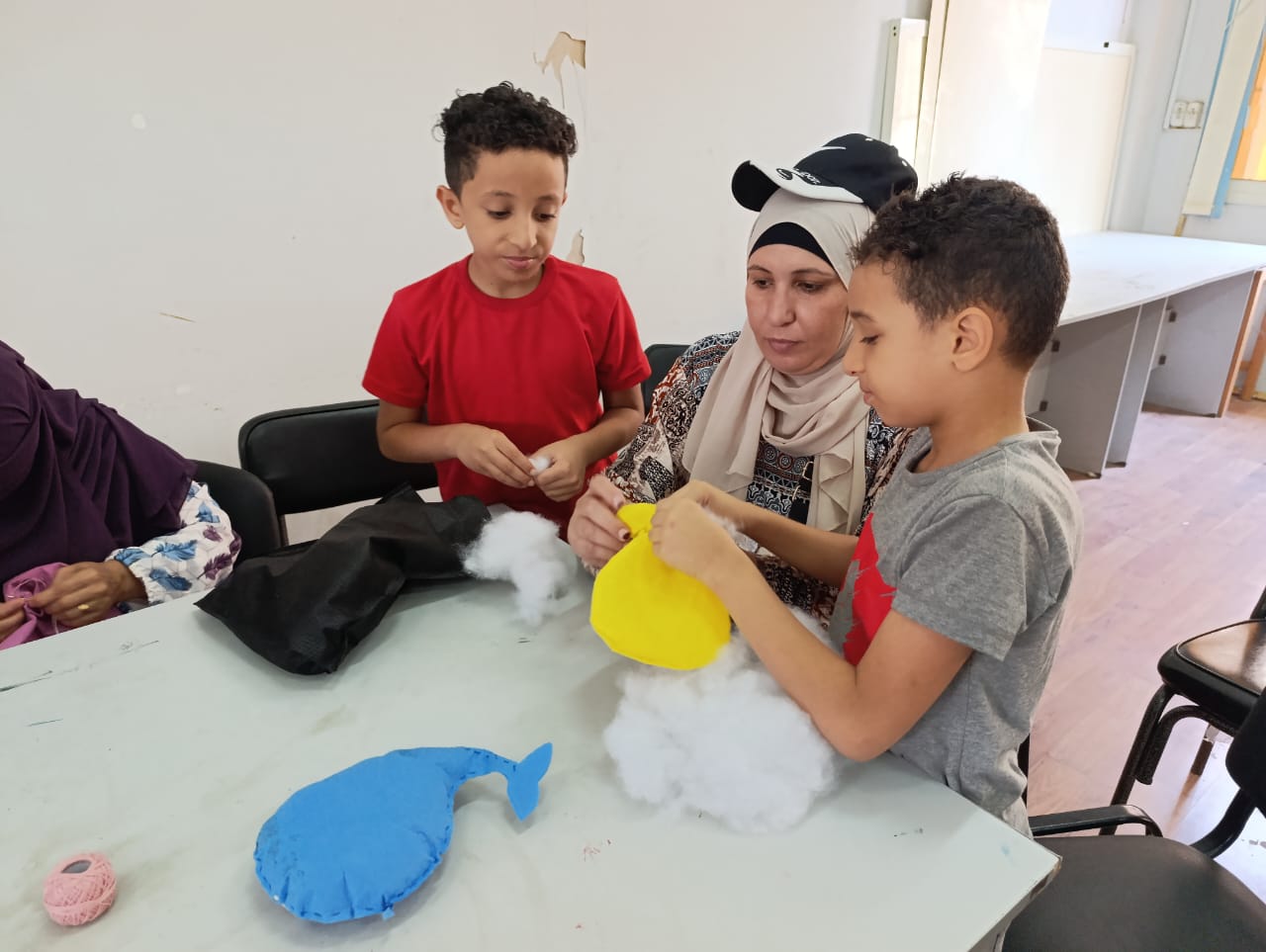 وتضمنت الورش أعمال قماش الجوخ ،اشكال بالصلصال ، طباعة على القماش، ورش توعية موازيه لأولياء الأمور ، غيرها ...