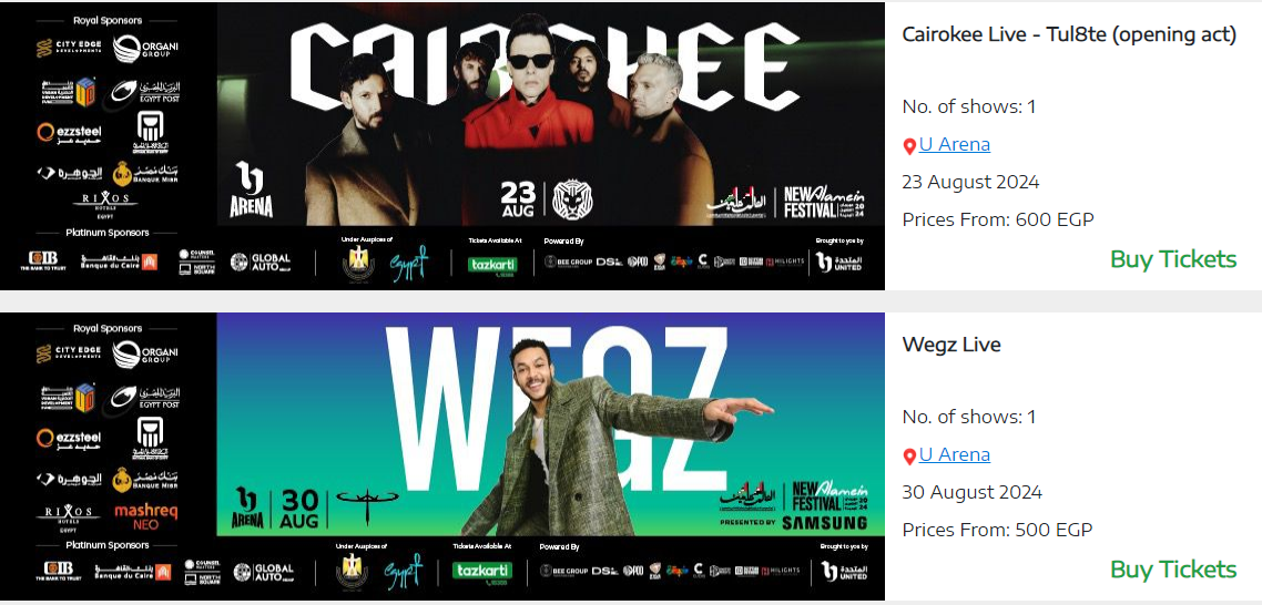 موعد حفلات كايروكي وتوليت و ويجز في ختام العلمين 2024