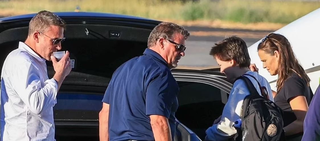 وبالإضافة إلى غارنر، التي طلقها في عام 2018 بعد 13 عامًا من الزواج، كان النجم برفقة طفله الأوسط فين عندما نزل من طائرة خاصة.
