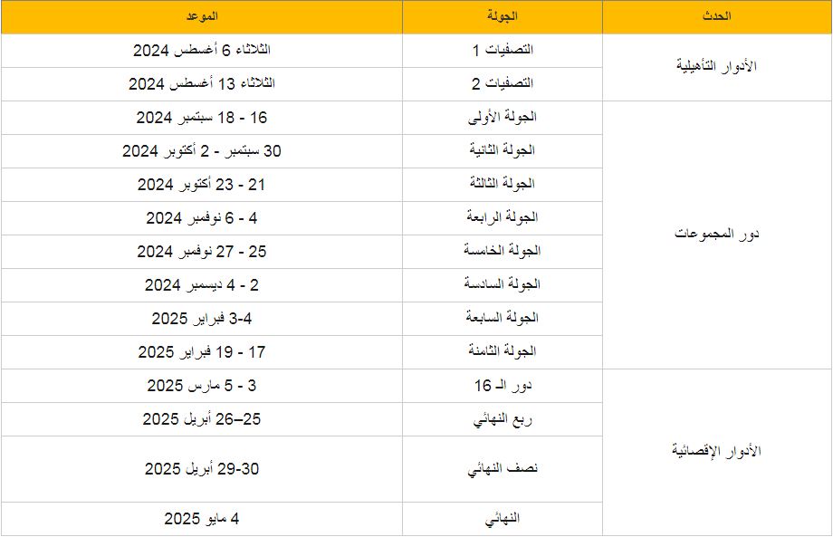 جدول مواعيد مباريات دوري أبطال آسيا للنخبة 2024-2025