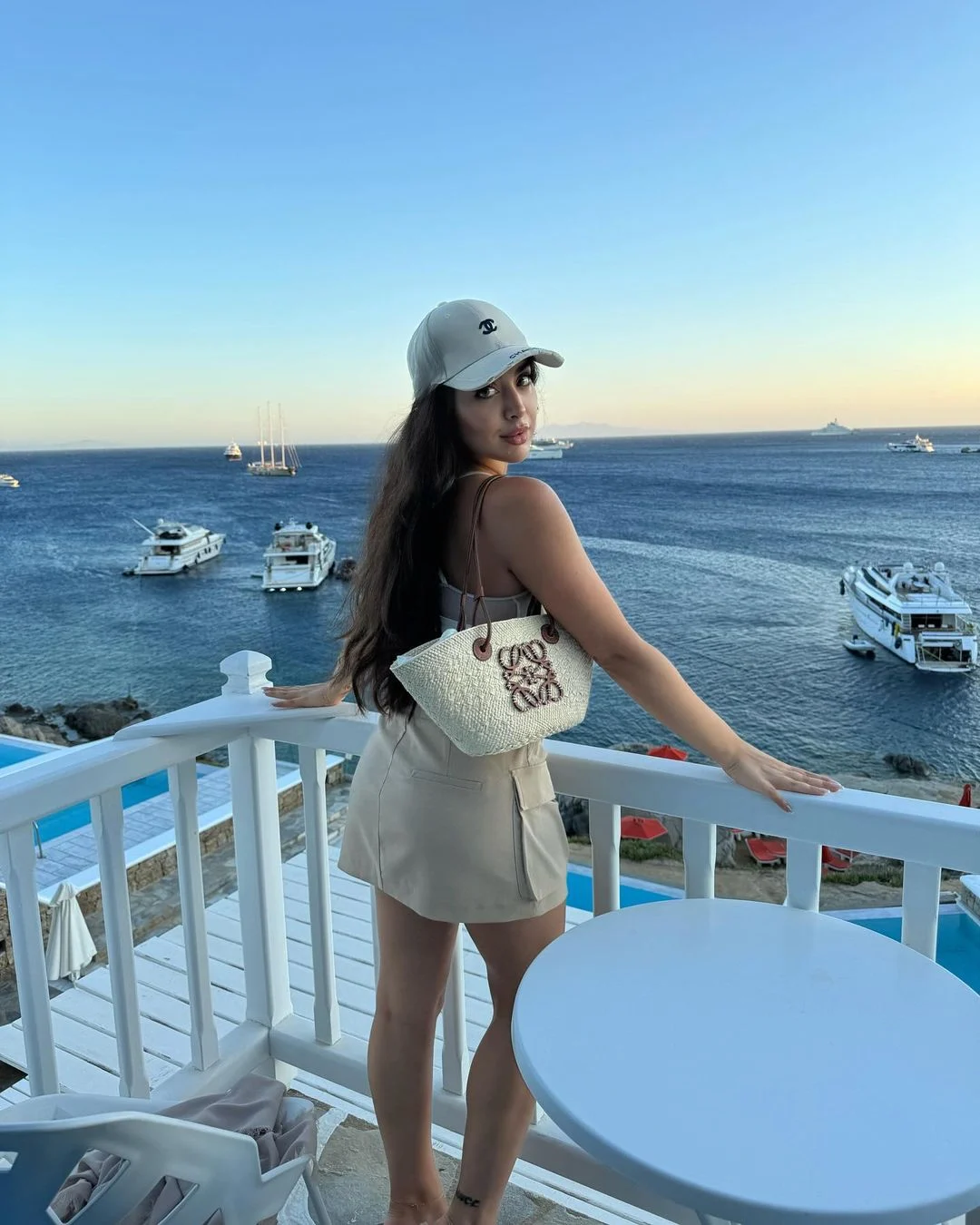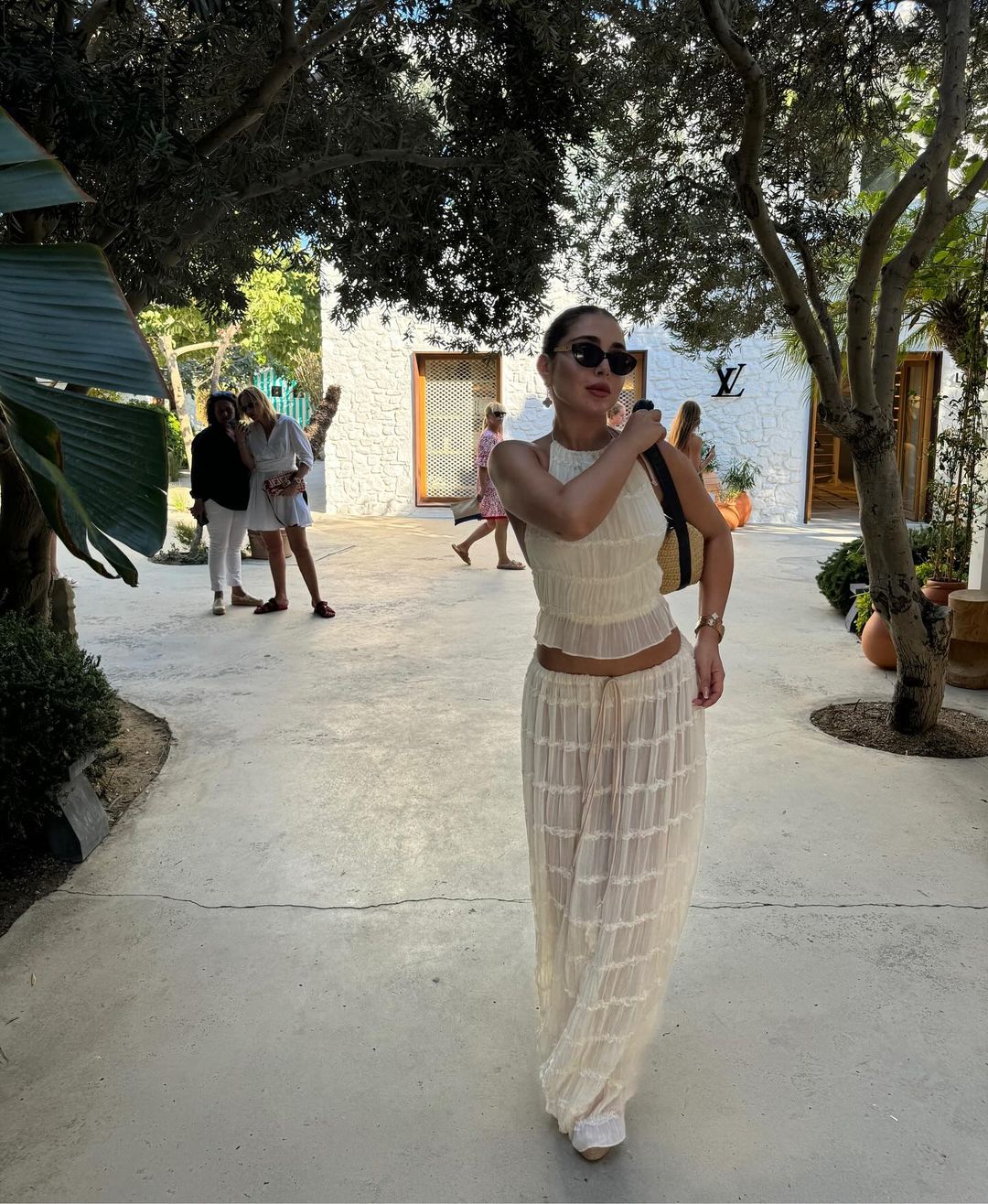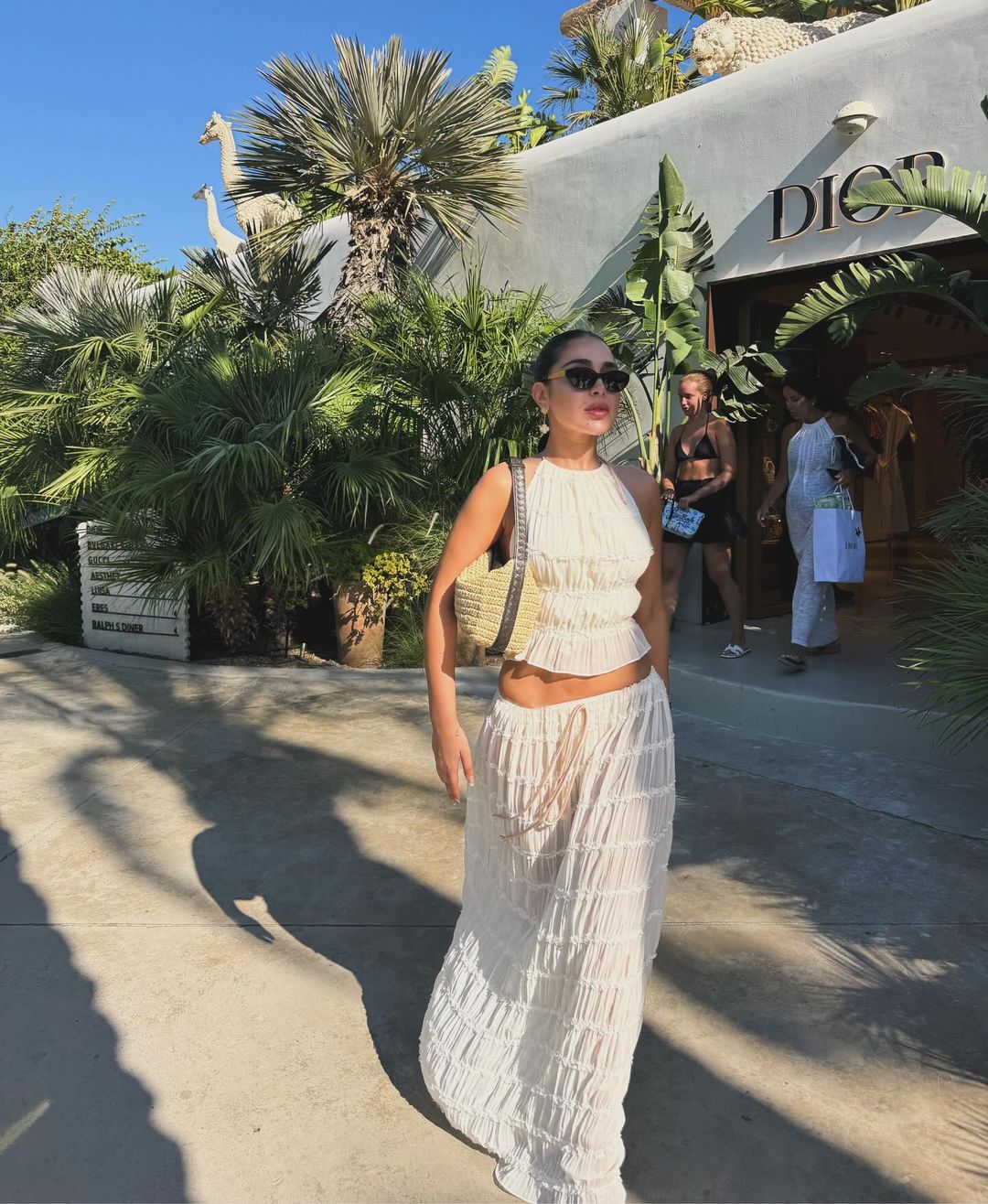 ظهرت هيا مرعشلي، مرتدية خلال عطلتها في اليونان استايل ناعماً باللون الأبيض بقماش شفّاف، عبارة عن "توب" من دون أكمام، ومكشوف عند البطن، ونسقت معه تنورة طويلة من قصة الأوفر سايز، من نفس نوع القماش، وأكملت هيا إطلالتها بحقيبة من القش باللون البيج، وتزيّنت بمجوهرات ذهبية من وردة "فان كليف".