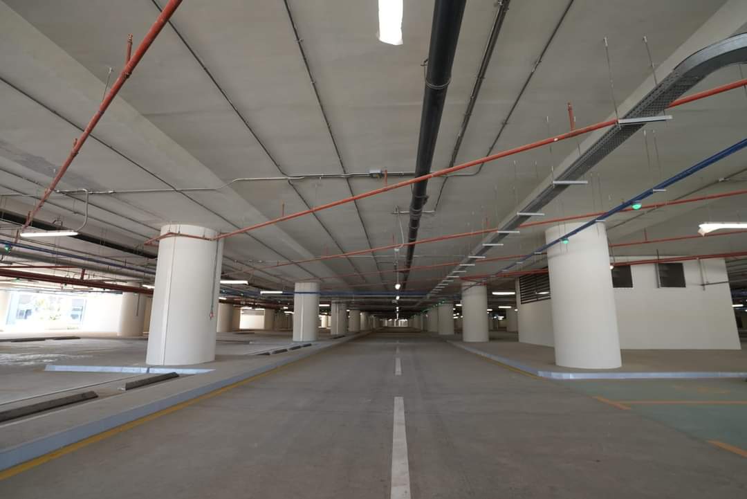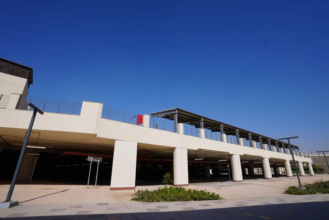 2- جراج سطحى للسيارات الملاكى ويسع 4025 سيارة، ويشمل مظلات معدنية مغطاة بألواح الطاقة الشمسية ومزودة بشحن كهربائى للسيارات.