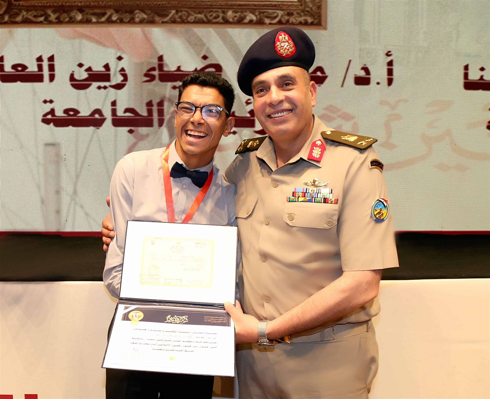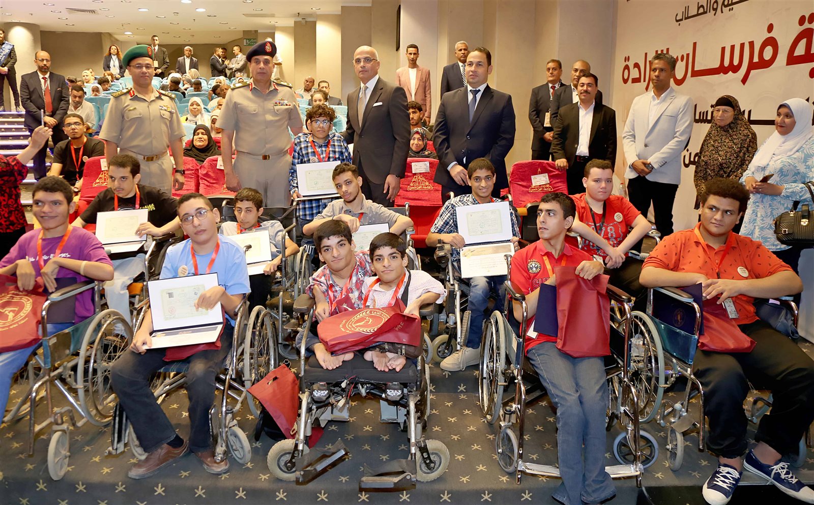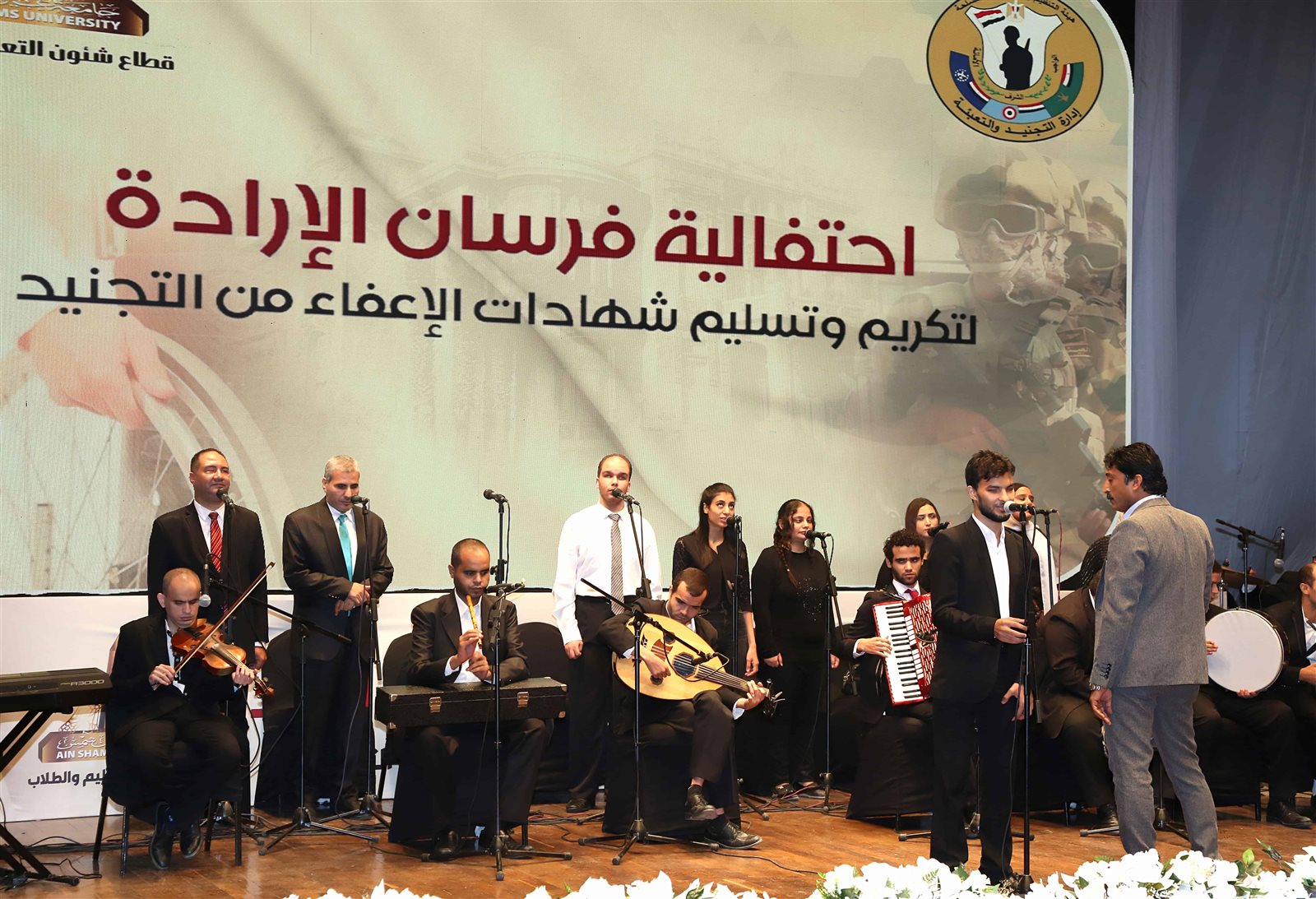 كما تضمنت المراسم تقديم عدد من الفقرات الفنية للطلبة ذوى الهمم أتبعها تسليمهم شهادات المعاملة التجنيدية وأعرب الطلبة ومرافقوهم عن جزيل الشكر والتقدير للقوات المسلحة على الدعم اللامحدود الذى تقدمه لهم لرفع روحهم المعنوية تقديراً لمكانتهم المجتمعية باعتبارهم نسيج من أبناء شعب مصر العظيم.