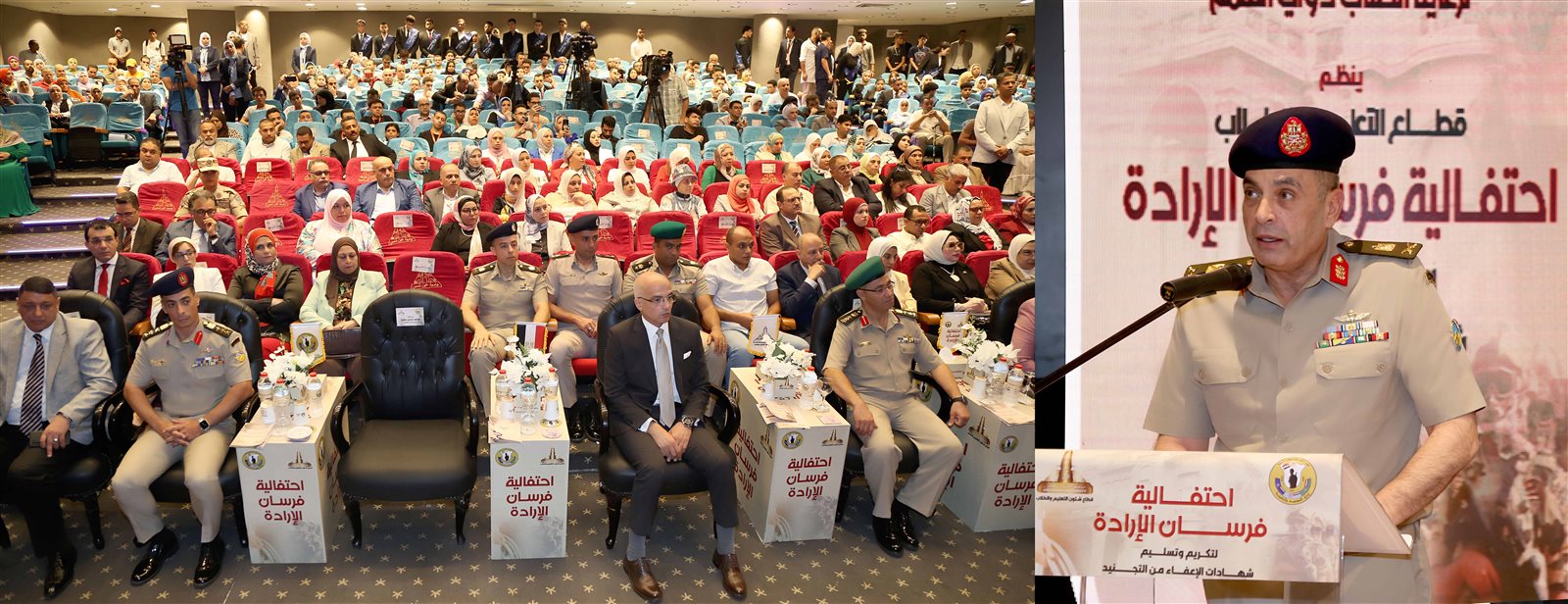 وألقى اللواء محـمد صبحى مهنا مدير إدارة التجنيد والتعبئة كلمة أشار خلالها إلى حرص القيادة العامة للقوات المسلحة على توفير كل سبل الدعم والتيسير على أبناء الوطن وإتباع أنسب الأساليب للمعاملة المجتمعية الراقية التى تليق بهم مما يسهم فى تعميق علاقة ترابطهم بقواتهم المسلحة.
