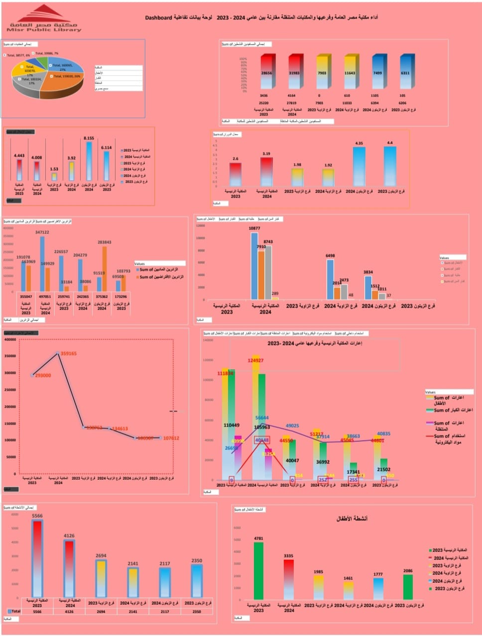 حققت مكتبة مصر العامة الرئيسية بالدقي، برئاسة السفير عبد الرؤوف الريدي، وفرعاها بالزيتون والزاوية مؤشرات أداء عالية وذلك خلال العام المالي 2023-2024، إذ تتميز مكتبة مصر العامة بوجود ثقافة تنظيمية تعتمد على الإحصائيات في ظل وجود مجموعة متميزة من العاملين المبدعين.