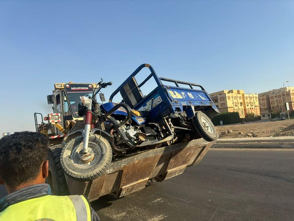 أيضا ضبط تحويل نشاط من سكني الي ورشه حداده من المنطقة الرابعة ، و رفع اشغالات من مشروع دهشور ، وضبط تروسيكل مخلفات من طريق زويل