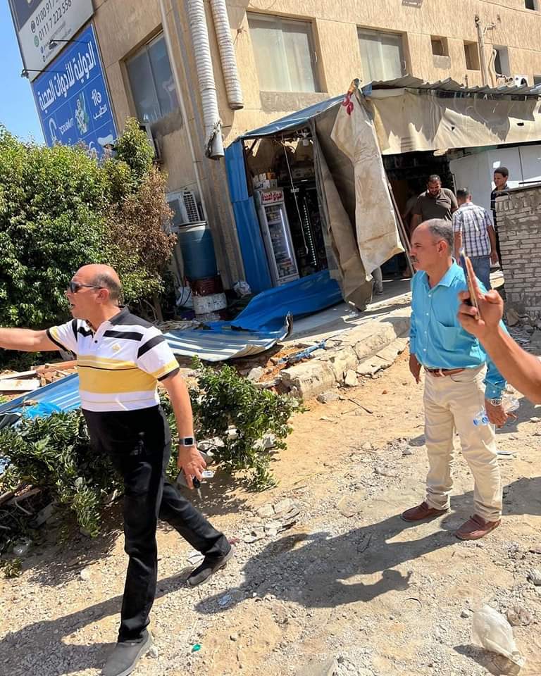 كما تم تنفيذ قرارات سحب لمحلات في سكن مصر و دار مصر ، ورفع اشغالات من طريق الواحات