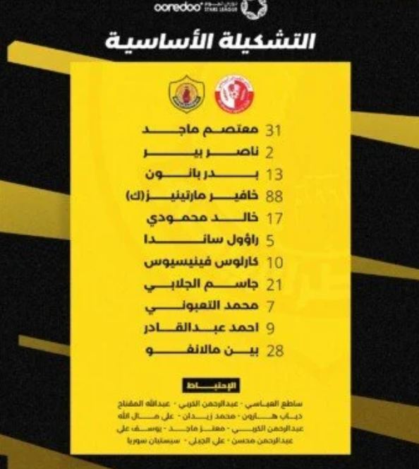 وجاء تشكيل قطر لمواجهة الشمال على النحو الآتي: