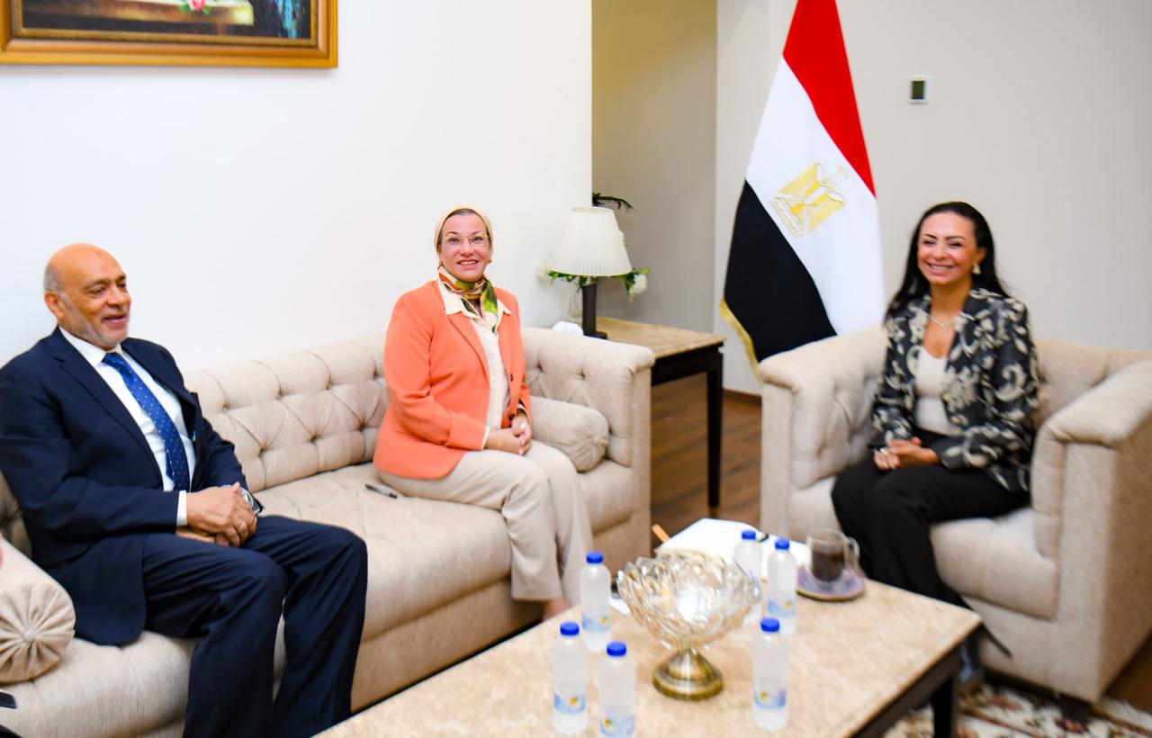 ألتقت الدكتورة ياسمين فؤاد وزيرة البيئة والدكتورة مايا مرسي وزيرة التضامن الاجتماعي، وذلك بمقر وزارة التضامن الاجتماعي بمدينة العلمين الجديدة، بحضور الدكتور عماد عدلي مستشار وزيرة البيئة للحوار المجتمعي والمدير الوطني لبرنامج المنح الصغيرة ورئيس المنتدى المصري للتنمية المستدامة والأستاذة ياسمين سالم مساعد الوزيرة للتنسيقات الحكومية.