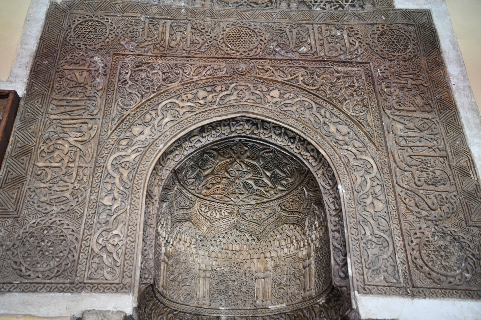 ويحمل العديد من القيم الجمالية حيث زخرفت واجهته بزخارف جصية قوامها عناصر نباتية وهندسية بديعة التكوين تتشابه مع زخارف المحراب المملوكي في جامع عمرو بن العاص، وكذلك به كرسي المصحف الذي يرجع تاريخ صناعته إلى أوائل القرن الثامن الهجري.