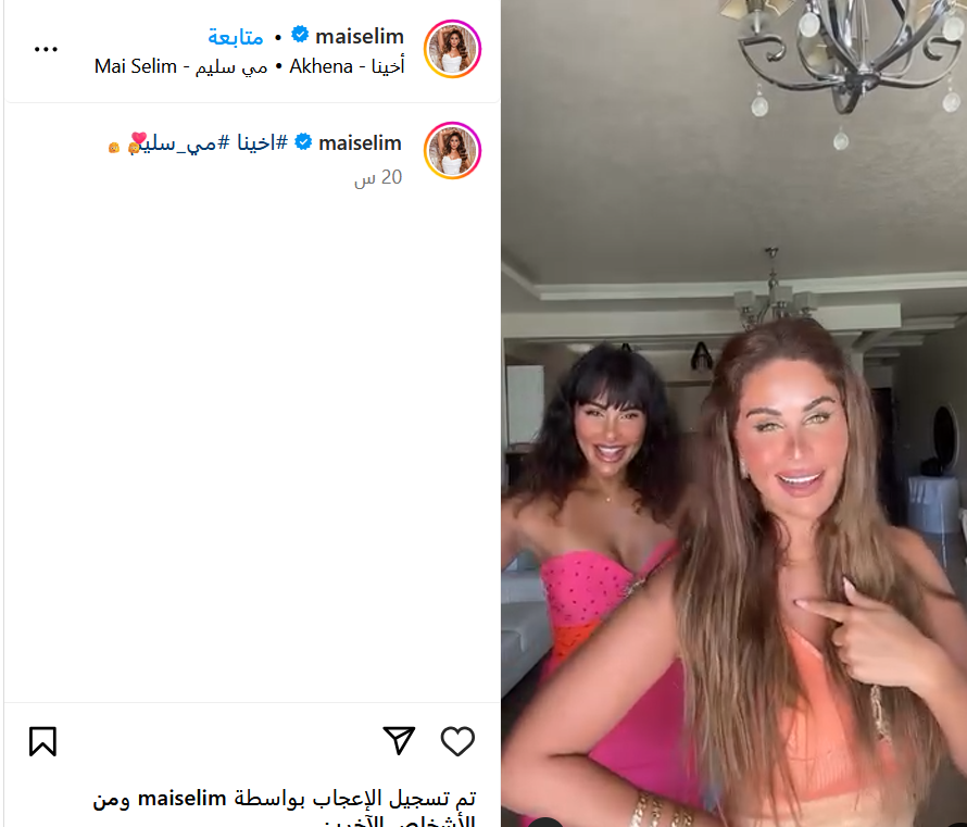 شاركت الفنانة مي سليم مقطع فيديو لها برفقة شقيقتها ميس حمدان وهم يرقصان على أنغام أغنية " أخينا" وذلك عبر صفحتها الرسمة على موقع تبادل الصور والفيديوهات الأشهر انستجرام.