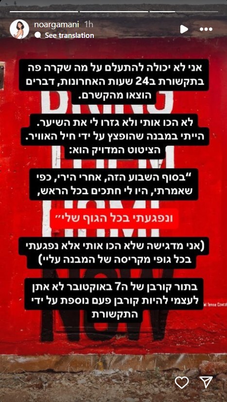 وأضافت: "أنا ضحية لعملية السابع من أكتوبر، ولا يمكنني أن أكون ضحية مرة أخرى للإعلام الإسرائيلي".