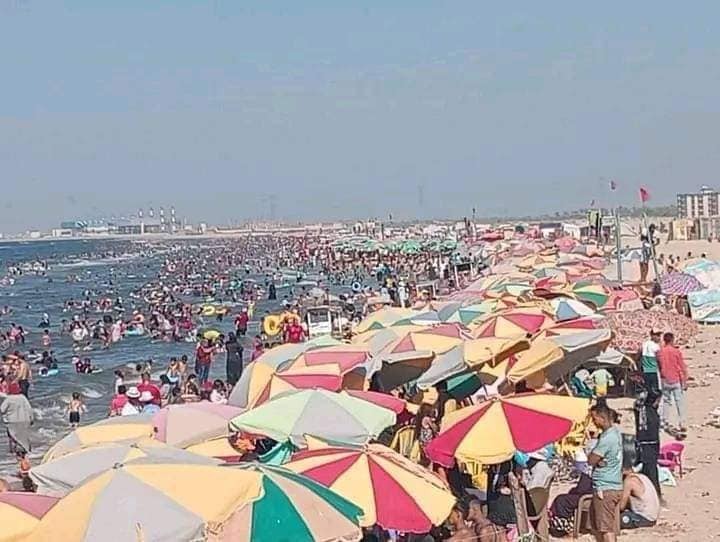 زحام بشواطئ جمصة.. وانتشار المنقذين على الشواطئ