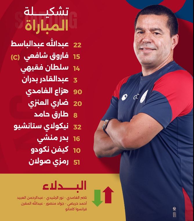 أعلن المدير الفني كوزمين كونترا تشكيلة فريق ضمك الأساسية لمواجهة الخليج في الدوري السعودي للمحترفين " دوري روشن " والتي شهدت تواجد النجم طارق حامد.