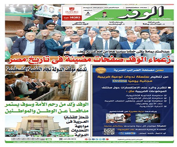تنشر جريدة الوفد في عددها الصادر، غدًا السبت، الكثير من الموضوعات والتقارير الإخبارية المهمة، أبرزها: "زعماء الوفد صفحات مضيئة في تاريخ مصر".