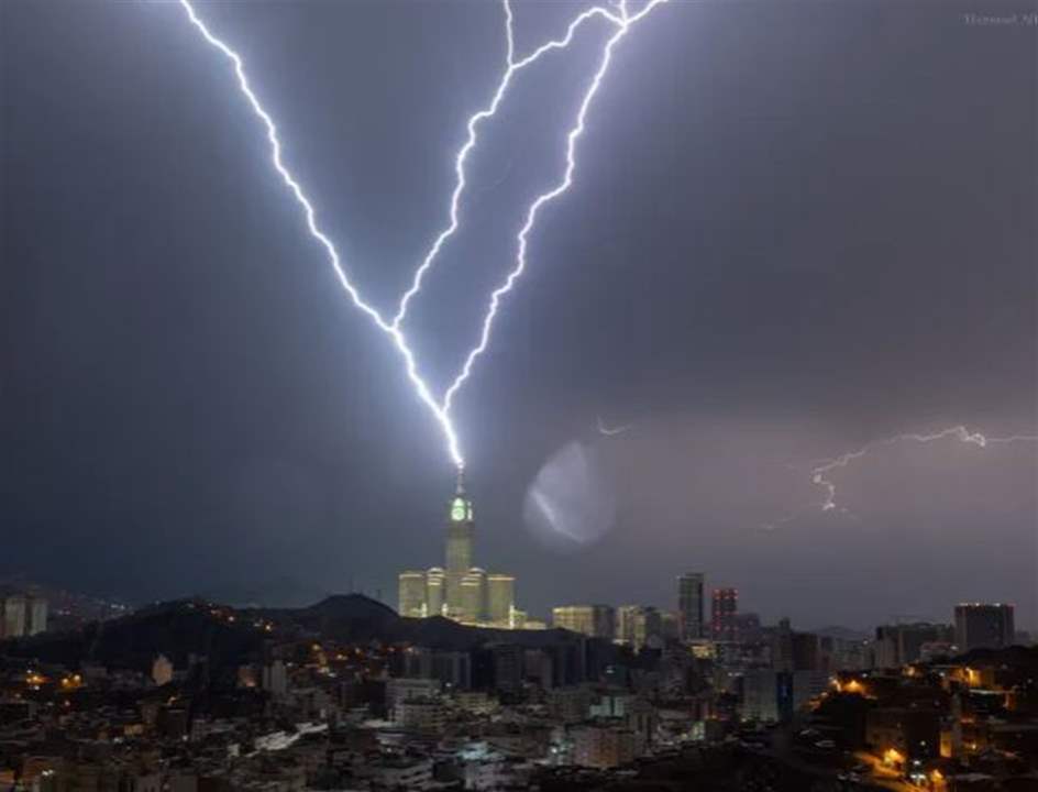 لحظة ضرب البرق برج الساعة بمكة المكرمة: