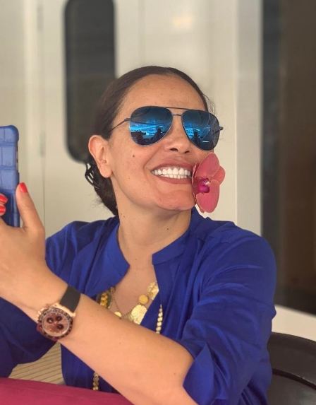 وبدت شريهان بإطلالة جذابة، حيث ارتدت فستان طويل وفضفاض، صمم من قماش ناعم باللون الأزرق الناصع وتزينت ببعض الإكسسوارات الذهبية لتعكس شباب روحها وحبها للحياة كعادتها.