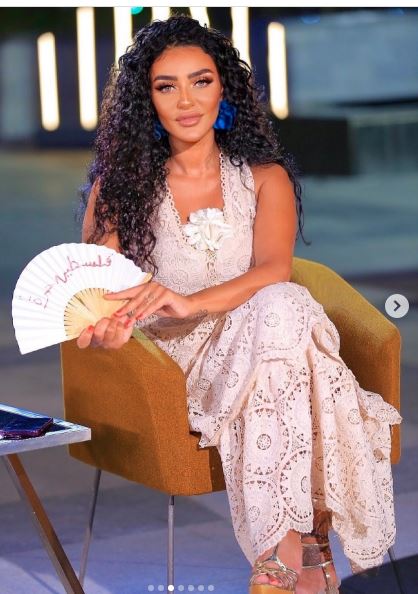 هبة الأباصيري تتألق بفستان الدانتيل الناعم