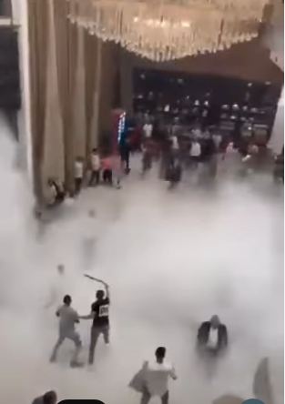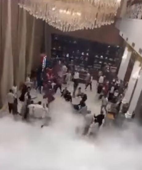 وأشار المتابعون إلى أن أحد المعازيم استخدم طفاية حريق لإنهاء المشاجرة بين الحاضرين في الفرح، وتفريق الطرفين الذين اشتبكوا مع بعضهم البعض.