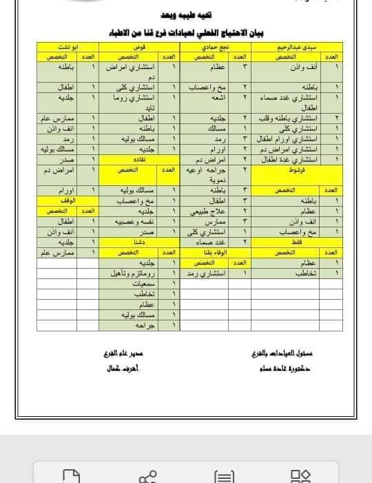 وأطفال وباطنة بعيادة التأمين الصحي بقوص، كذلك الحاجة إلى التخصصات الطبية وفقاً لما هو مرفق.