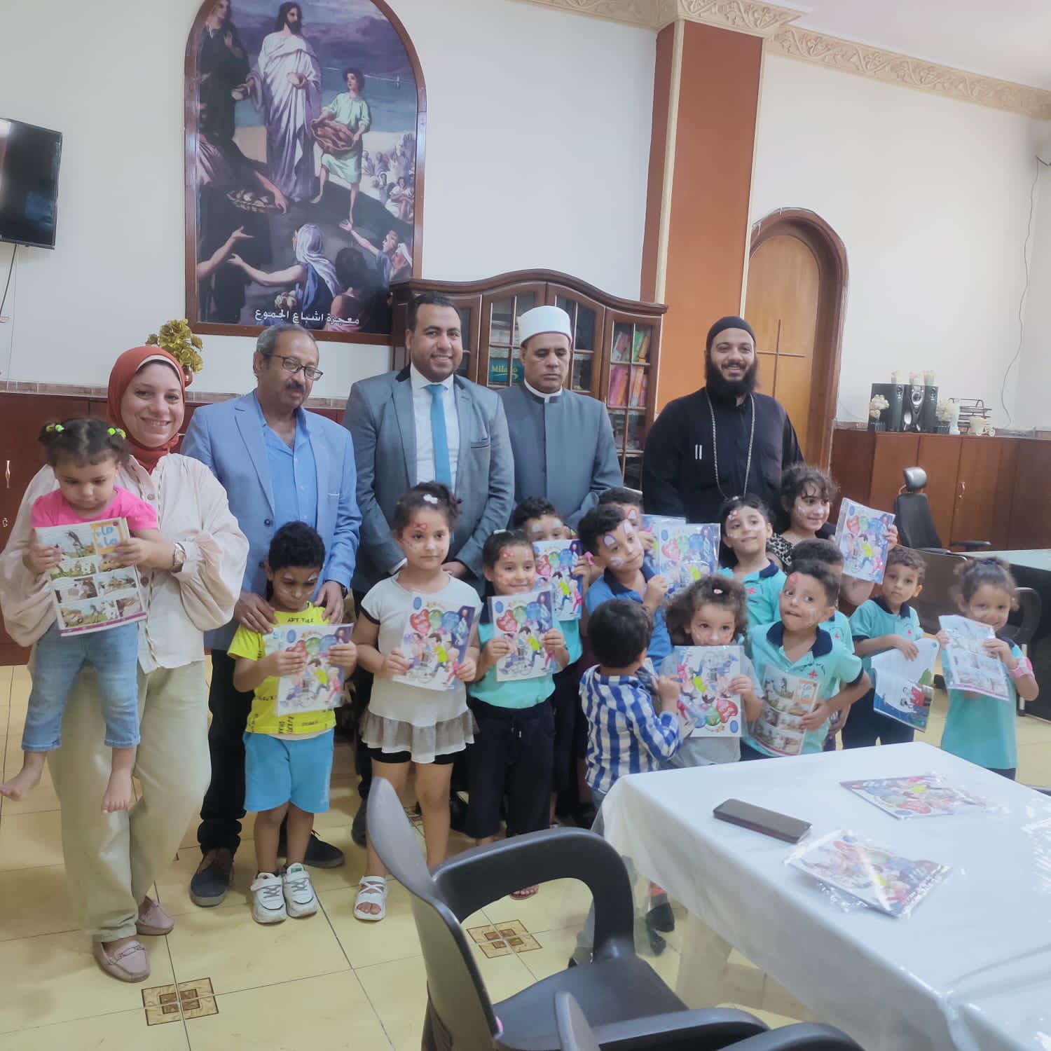 اختتمت القافلة أعمالها بزيارة أطفال حضانة كنيسة السيدة العذراء مريم، وسط مدينة مرسى مطروح، لتقديم التهنئة لهم في عيد «السيدة العذراء»، وعقد ورش حكي ممتعة للأطفال، تغذي الروح الوطنية والدينية التي تجمع دائمًا بين قطبي الأمة، وتعزيز قيم الإنسانية والتعايش.