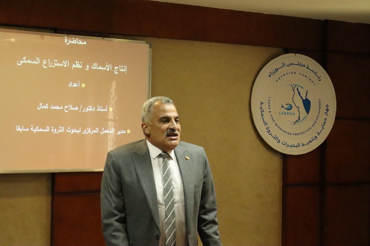 افتتح اللواء الحسين فرحات البرنامج التدريبي بعبارات من الترحيب المحاضرين والمتدربين من مختلف الجامعات وأصحاب المزارع السمكية وايضا العاملين بالجهاز .