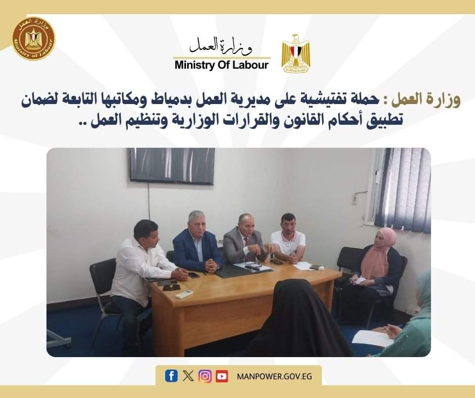 حملة تفتيشية على مديرية العمل بدمياط لضمان تطبيق أحكام القانون والقرارات الوزارية