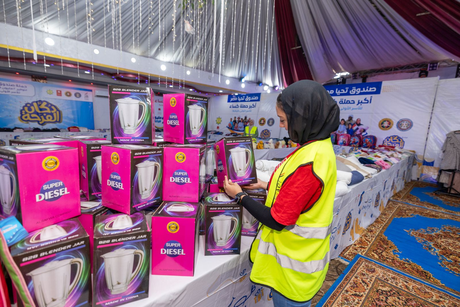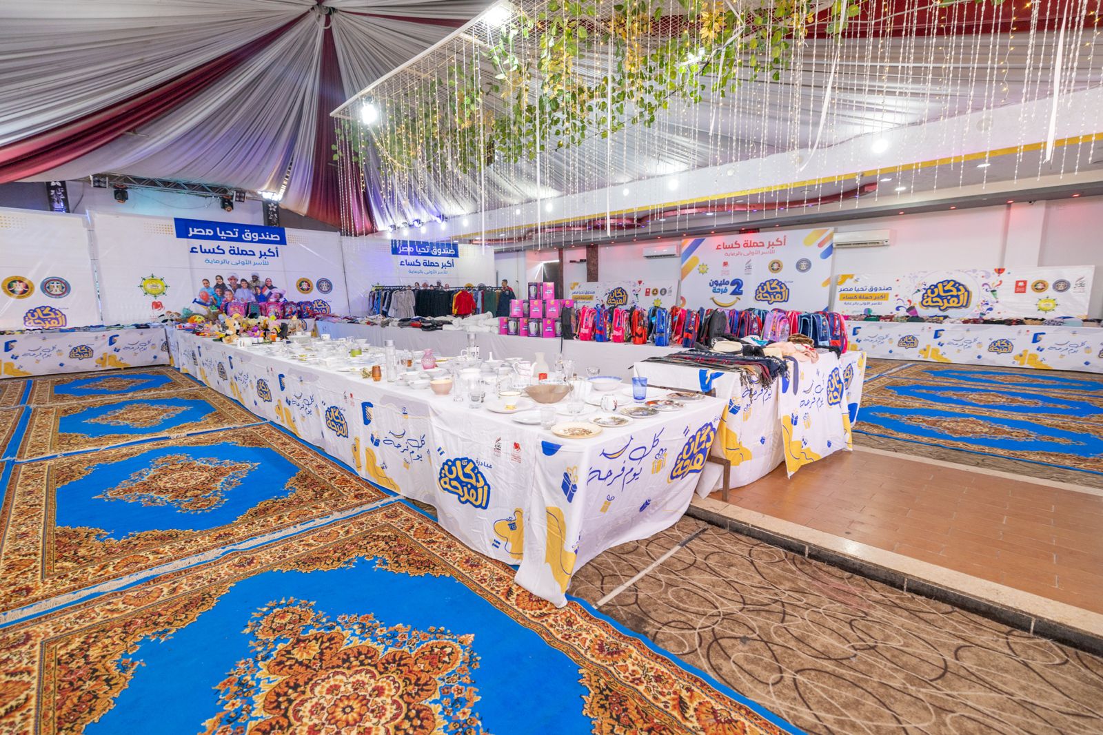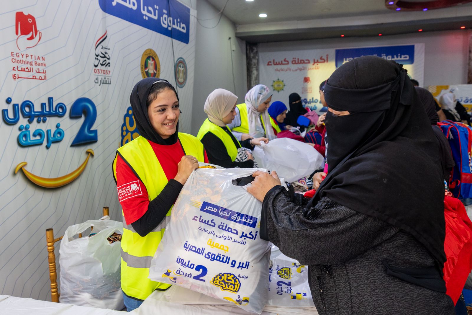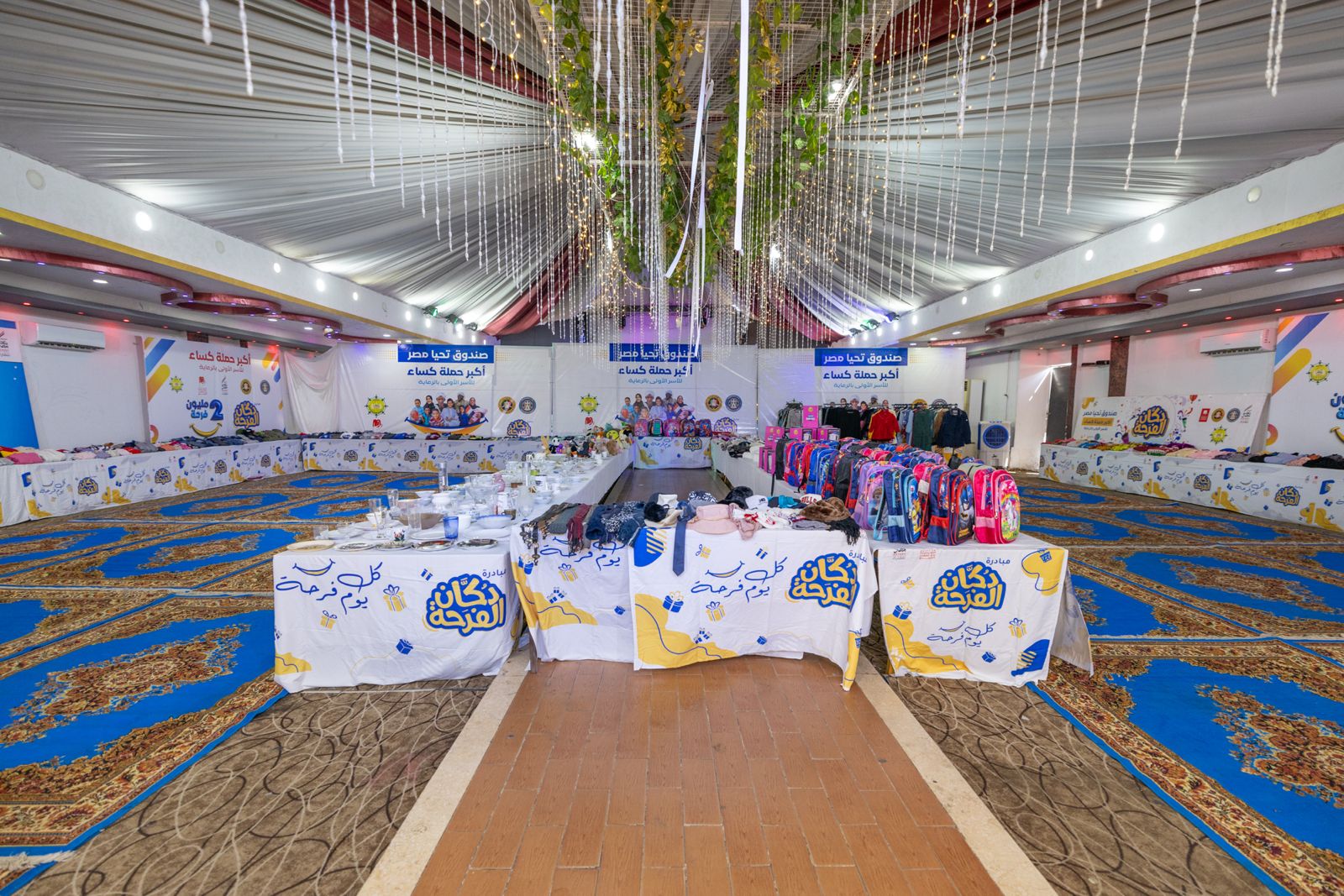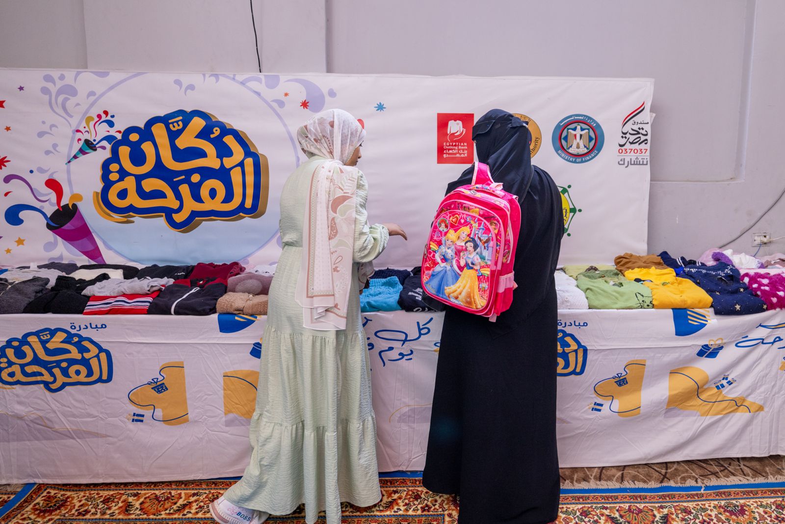 وشمل معرض "دكان الفرحة" 20 ألف قطعة من الملابس، والأحذية، والإكسسوارات، وأواني الطهي، والمفروشات، وألعاب الأطفال، فضلًا عن توزيع الحقائب المدرسية بكافة مشتملاتها من الأدوات والمستلزمات المدرسية، ويُتيح المعرض لكل أسرة فرصة اختيار 14 قطعة متنوعة تلبي احتياجاتها، وذلك بالتعاون مع بنك الكساء المصري وجمعية البر والتقوى المصرية المركزية.