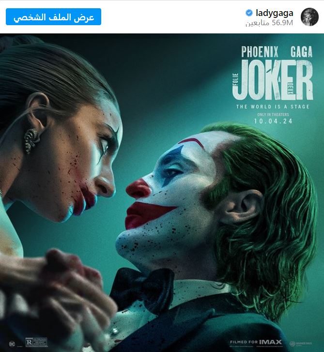 وفي سياق آخر، تنتظر ليدي جاجا عرض الجزء الثاني من الفيلم السينمائي ‏Joker‏ والذي من المنتظر طرحه بدور العرض السينمائي في أكتوبر المقبل.