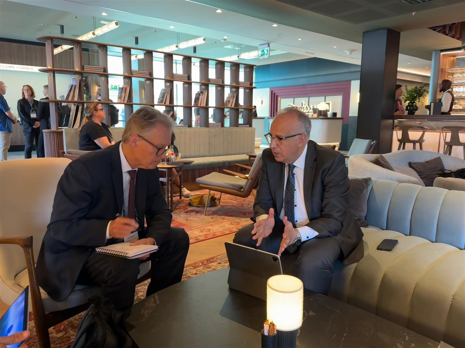 التقى الدكتور هانى سويلم وزير الموارد المائية والري ورئيس مجلس وزراء المياه الأفارقة (الأمكاو)، آلان آتكيسون السكرتير التنفيذي لمنظمة "الشراكة العالمية للمياه" (GWP)  على هامش فعاليات "الاسبوع العالمى للمياه" فى ستكهولم .