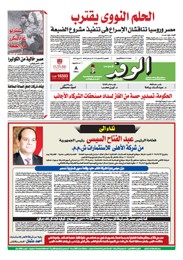 تنشر جريدة الوفد في عددها الصادر، غدًا الخميس، الكثير من الموضوعات والتقارير الإخبارية المهمة، أبرزها: "الحلم النووي يقترب".