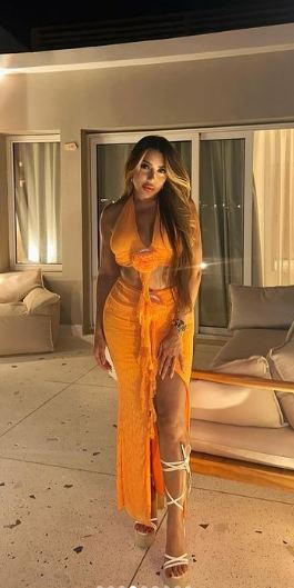 وبدت سارة سلامة بإطلالة أنوثية جريئة، حيث ارتدت توب قصير كشف عن خصرها ونسقت عليه جيب قصيرة صممت من خيوط ناعمة باللون البرتقالي، فيما انتعلت صندلًا بكعب عال.