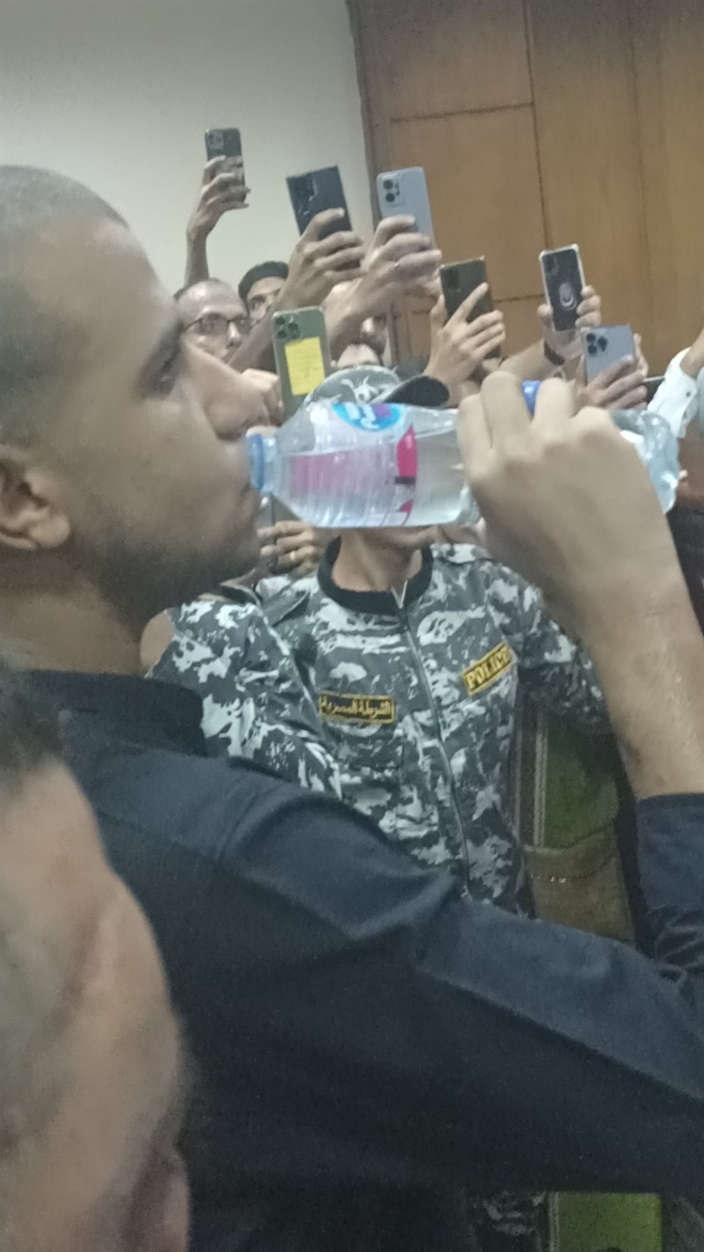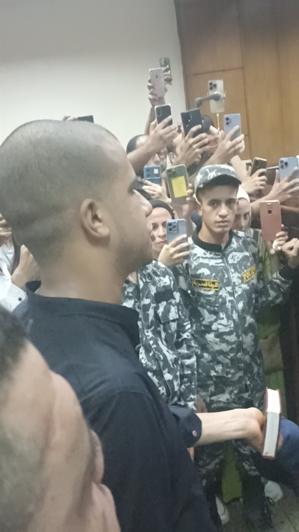 وظهر صاصا بالبلدة الزرقاء، حليق الرأس، ومثل أمام المحكمة، ومناقشة في قضية التزوير المنسوبة إليه، قال أنا معرفش، ومقصدش ارتكب جريمة.
