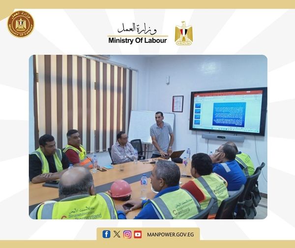 وذلك بشركة سيناء للأسمنت الأبيض ، بحضور 25 من المهندسين و الفنيين و الاداريين ، فى إطار سعى المديرية لتعزيز علاقات العمل بين طرفى العملية الإنتاجية والتعريف بالحقوق والواجبات التى نصت عليها أحكام القانون والقوانين ذات الصلة ، لتنظيم العمل والإنتاج ، فى قطاعات العمل المختلفة داخل المحافظة ، ونشر ثقافة السلامة والصحة المهنية وتأمين بيئة العمل بين العاملين بمختلف المنشآت لحماية العاملين والمترددين والمنشآت من مخاطر بيئة العمل.