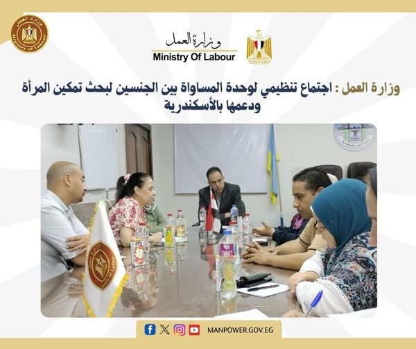وزارة العمل تنظم اجتماع لوحدة المساواة بين الجنسين لبحث تمكين المرأة بالإسكندرية