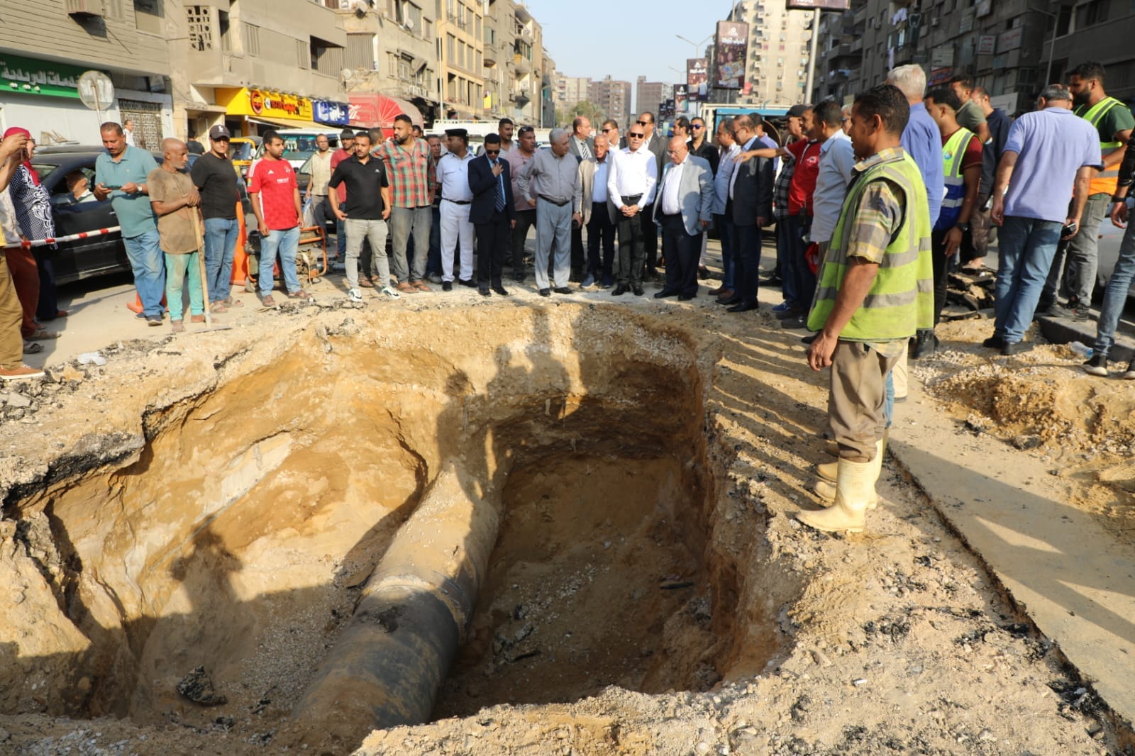 محافظ القاهرة يشرف على أعمال إصلاح ماسورة مياه بعين شمس